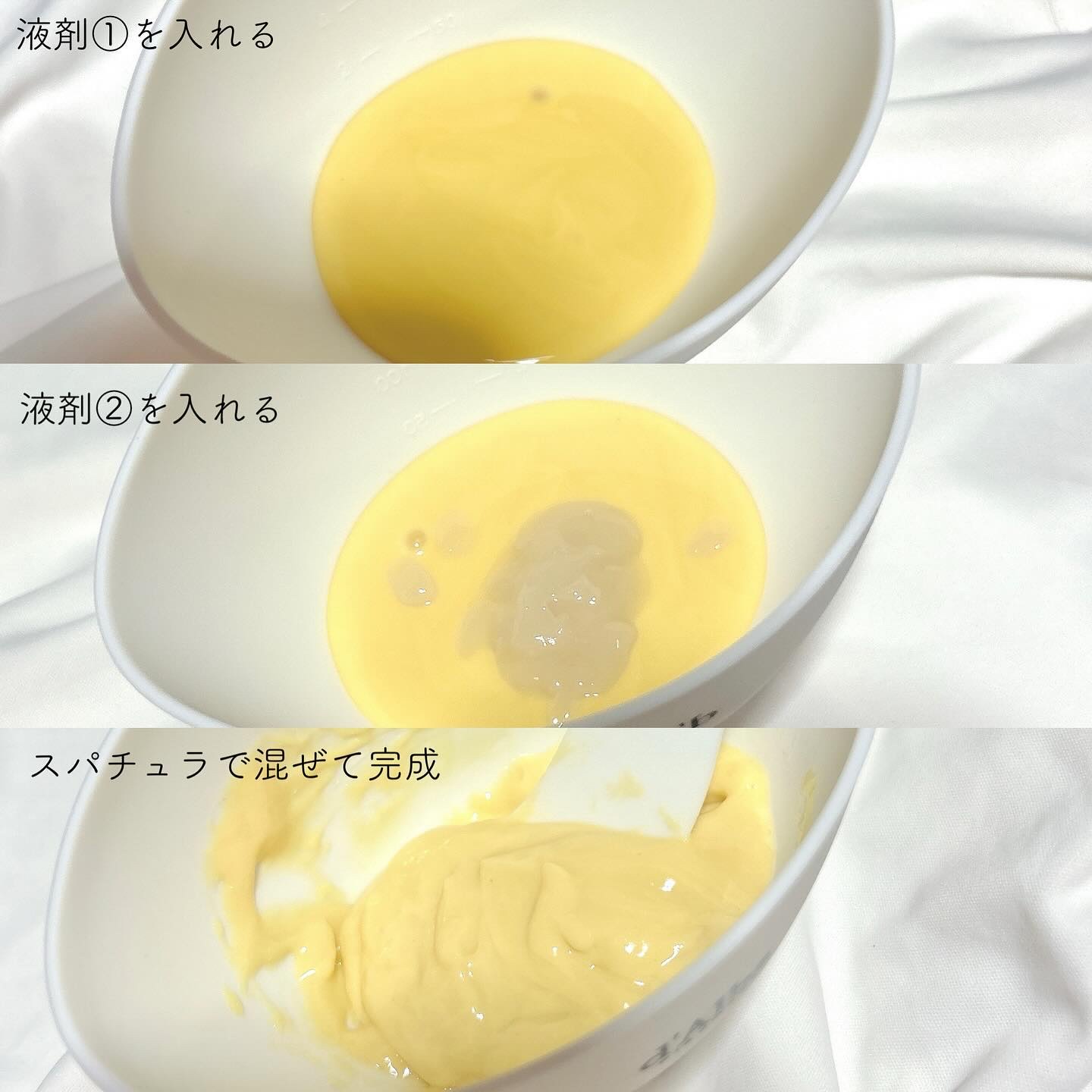 - 1剤:水、ケイソウ土、グリセリン、BG、アルギン酸Na、 PEG-75、1,2-ヘキサンジオール、ピロリン酸4Na、ツベルマグナツムエキス、トコフェロール、ヒドロキシアセトフェノン、ヒアルロン酸Na、コラーゲン水、 CI 77492、EDTA-2Na、リボフラビン、β-グルカン、加水分解ダイズタンパク、加水分解コメタンパク、加水分解シロバナルーピンタンパク、加水分解エンドウタンパク、加水分解バレイショタンパク、加水分解トウモロコシタンパク、加水分解カラスムギタンパク、加水分解オオムギタンパク、加水分解アーモンドタンパク、加水分解コムギタンパク、加水分解ホホバタンパク、加水分解野菜タンパク、糖タンパク、ヨモギ葉エキス、カワラヨモギエキス、ドクダミエキス、スピルリナプラテンシスエキス、クロレラエキス、グルコース、マンノース、香料 2剤:ケイソウ土、マカデミア種子油、ヒマワリ種子油、ダイズ油、トリ(カプリル酸/カプリン酸)グリセリル、ポリソルベート80、ベヘニルアルコール、ステアリン酸グリセリル、硫酸Ca、1,2-ヘキサンジオール、ピロリン酸4Na、レシチン、ツベルマグナツムエキス、トコフェロール、月見草油、ツバキ種子油、アボカド油、オリーブ果実油、ダイズステロール、酢酸トコフェロール、ヒポファエラムノイデス油、水、BG、香料