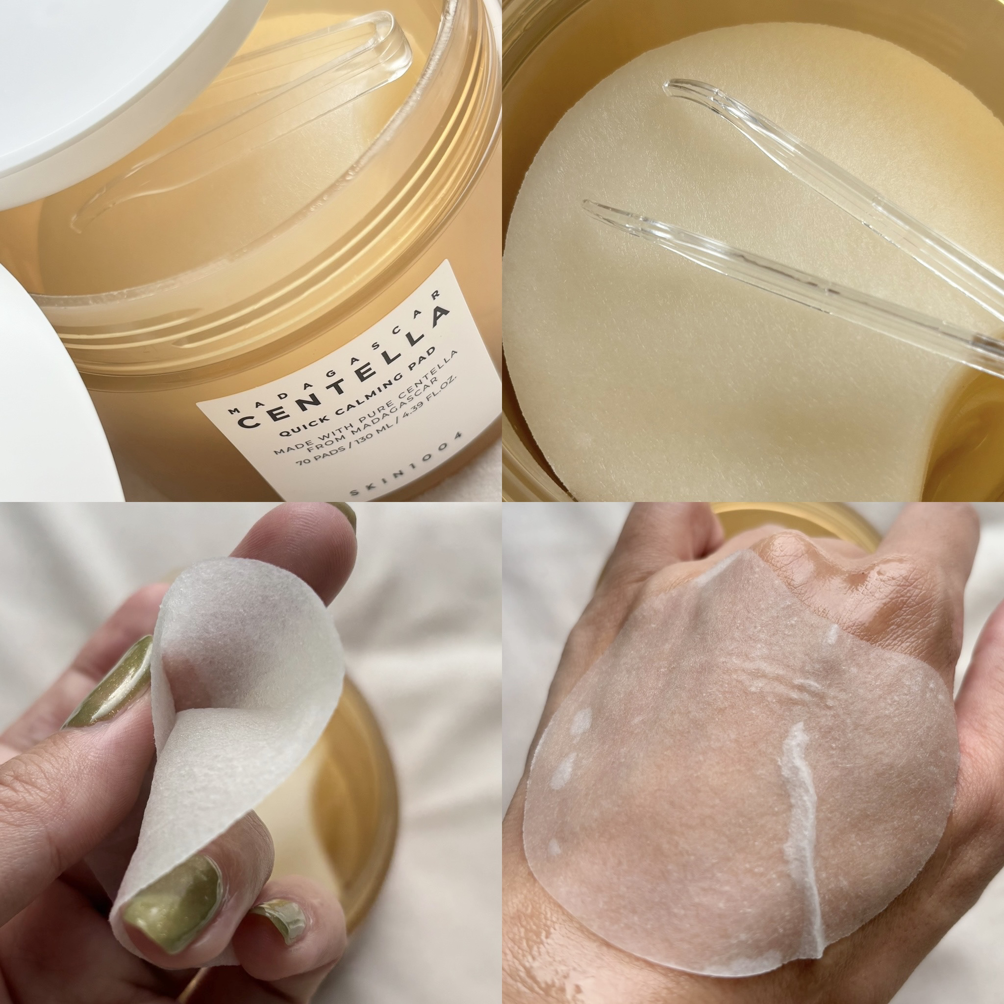 薄いのに美容液ひたひた♡!SKIN1004センテラクイックカーミングパッド薄めで大きめの三日月型目元や鼻周りにフィットしやすい形状です◎こちらは1〜3分貼った後お肌に残った美容液を肌に馴染ませるようにしていきますベタつきが抑えられているのでメ...