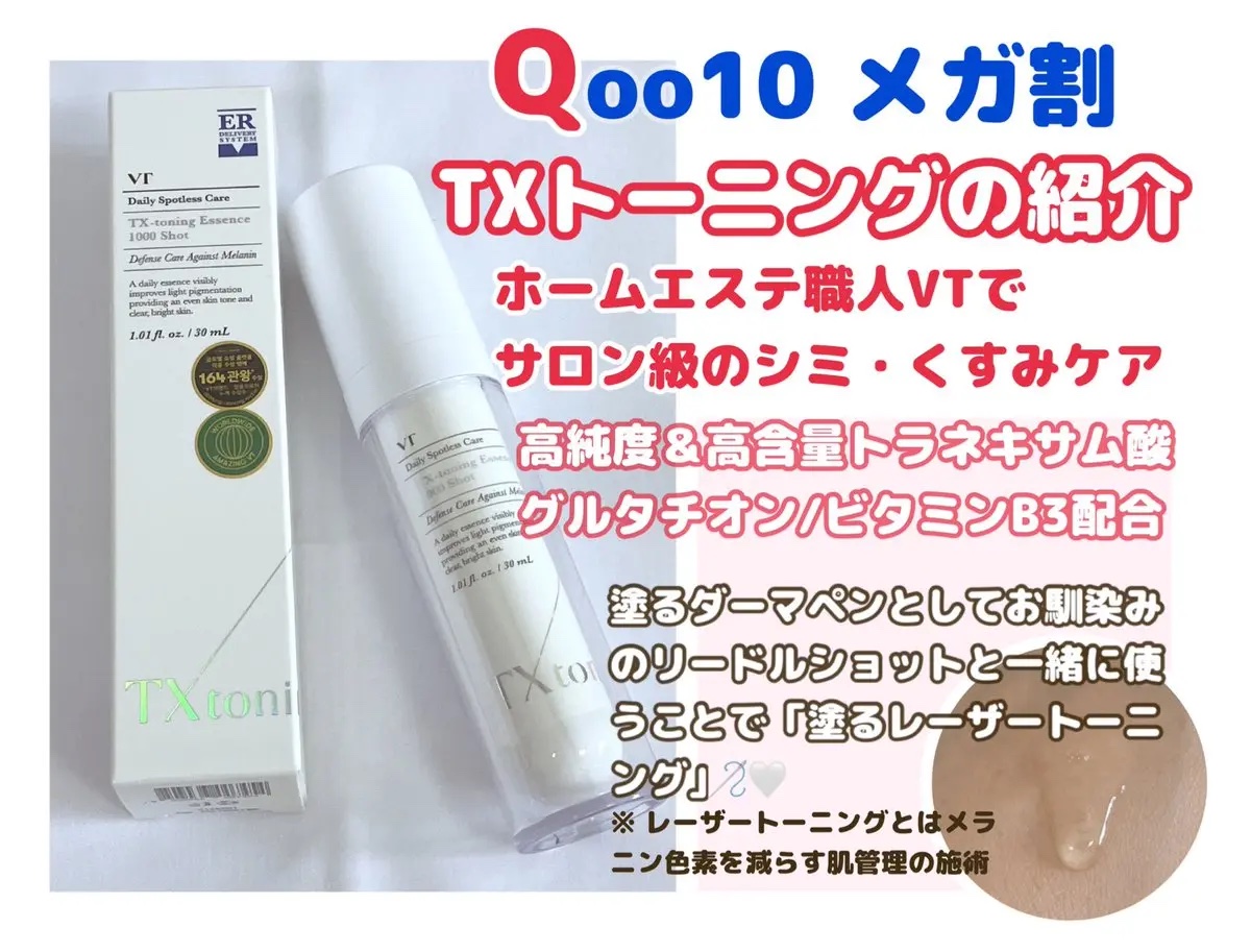 VTのTXトーニングエッセンス1000SHOT使い切りました。Qoo10見ましたが、なんと1000の方は既に販売終了だそうで。今は2000だけ販売されてるようです。リードルショットと違って刺激がないなら効果高そうな方を選びますよね。...