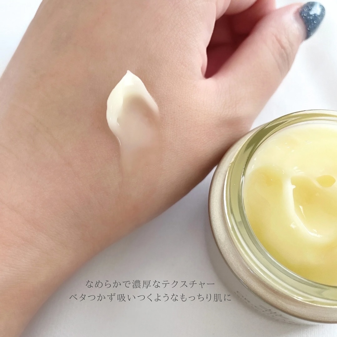 | テクスチャーはとろみのあるリッチなクリームで、肌にのせるととろけるように広がります。 | 詳細を見る | ||
