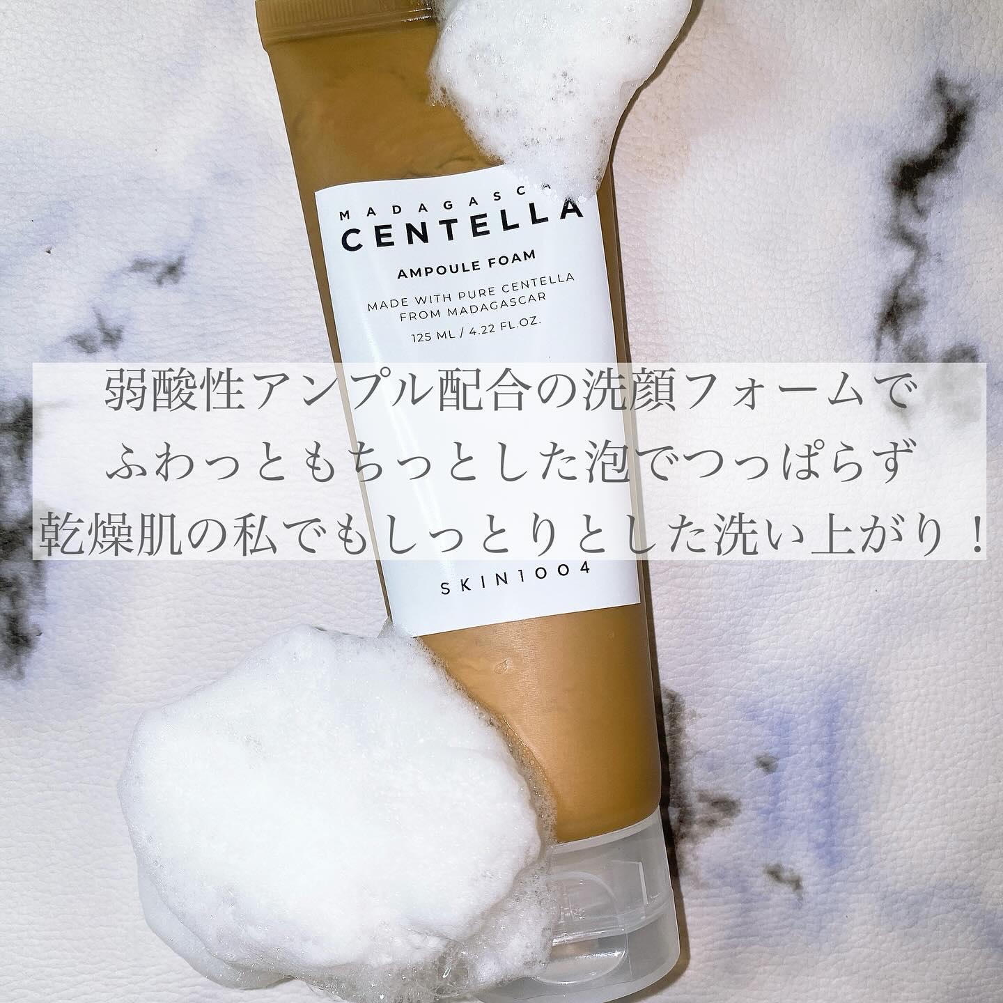 弱酸性のアンプル配合の自然由来の洗顔フォーム キメ細かい泡でゆらぎがちな肌をケアしながら老廃物や皮脂汚れまでしっかり洗浄🫧🫧🫧 🌿マダガスカル産ツボクサエキスは他産地よりも 約7倍の鎮静効果があるよ🌿 つっぱらず、しっとりとした洗い上がりが お気に入り🙆🏻♀️💛💛💛