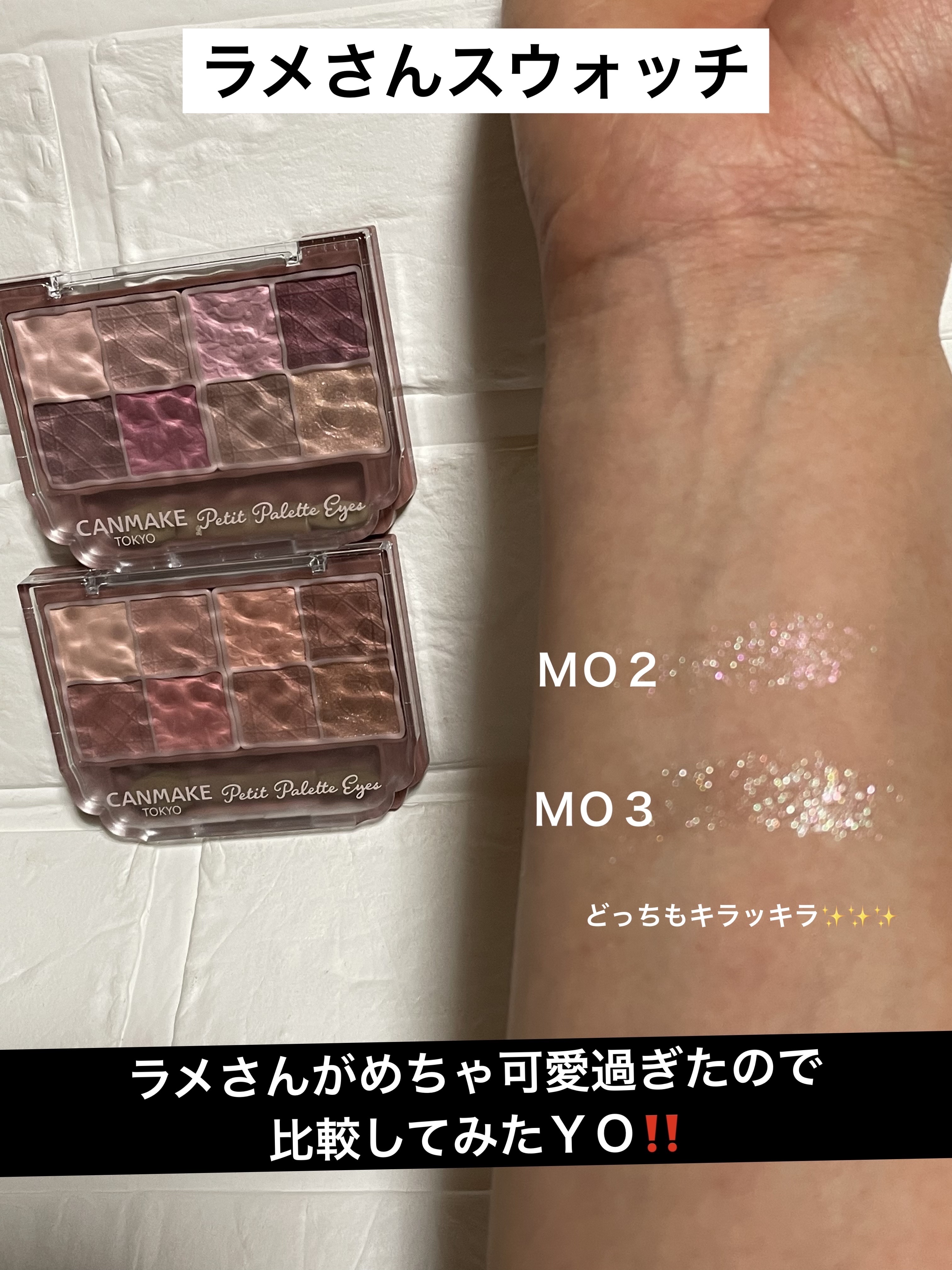 今年バズったリマグレージュ🩶と一昨日、イオンでまさかの先行販売してたチュチュバレリーナ🩰 どちらも可愛過ぎるブルベカラーですね😄 リマグレージュとチュチュバレリーナちょっと似てるかも?って思ったのでスウォッチしました😄 チュチュバレリーナの方が上段の方、明度(彩度?)があるので私の場合中間色を薄めにして締め色はアイラインの様に乗せればリマグレージュよりもチュチュバレリーナの方が使いやすいかもしれないと感じました🥹🥹🥹 そして、チュチュバレリーナは配色のコントラストが神です🤩ラメさんもタイプです✨ 一方で、リマグレージュは似たような色の配色で構成されている気がするので逆にメイクが難しく感じました💦 そんなリマグレージュですが最近、お蔵入りBOXに収納しましたがまだまだブルベメイクを研究したい故一軍復帰を果たしました👏👏👏 やっぱ似合わないと思っていても好きな色でもあるんだよなぁ😍懲りずに研究頑張ろう🤭