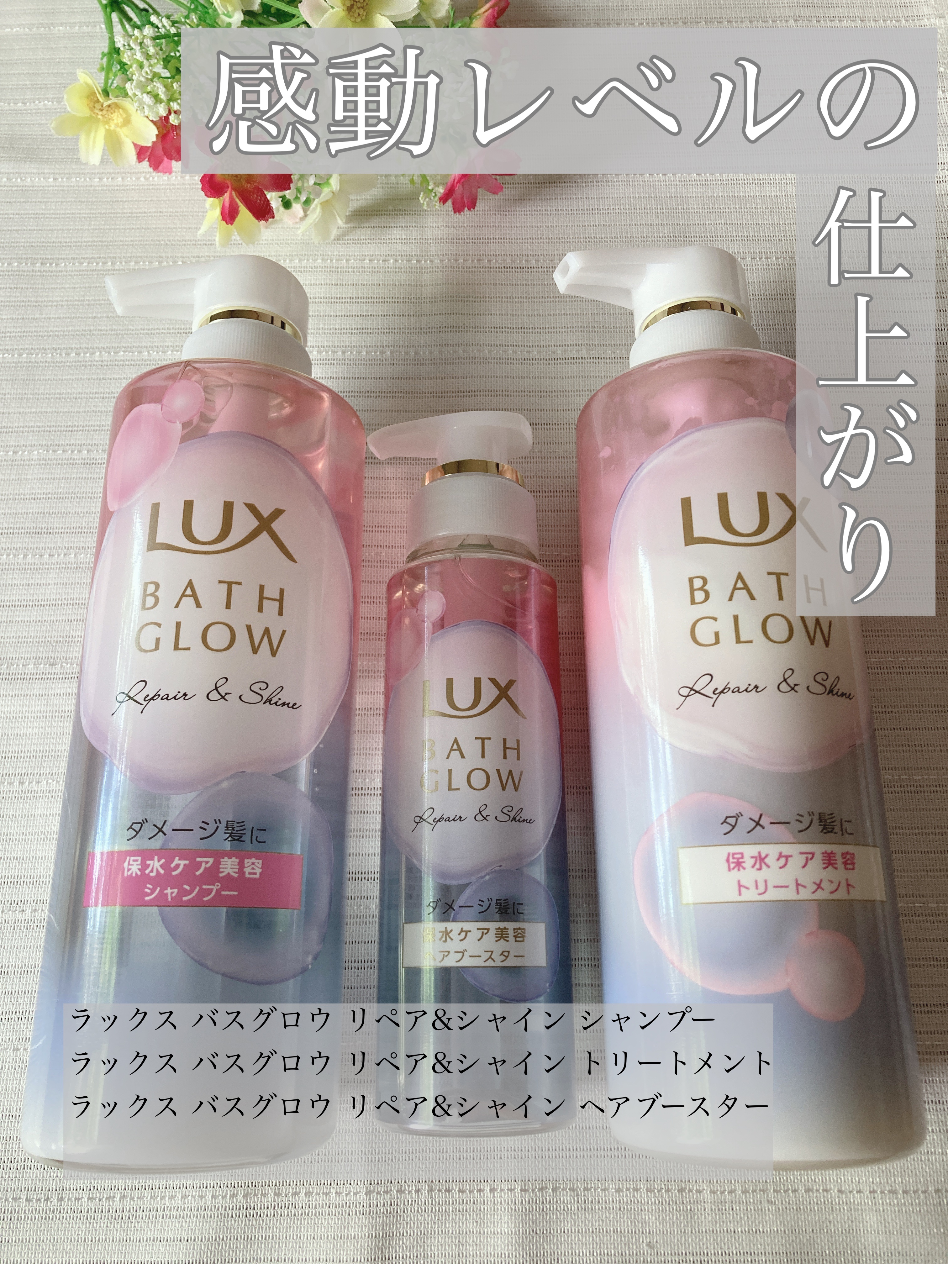 - ラックスバスグロウシリーズからリペア&シャインとストレート&シャインが登場。 髪内部にとどまり、髪の内部までうるおいをチャージする保湿成分“ぷるぷる浸透ウォーターゼリー”が髪の芯まで集中補修してくれます。 生まれ変わったラックス バスグロウ シリーズで、朝起きてから1日中、ぷるんとまとまるツヤ髪へ。