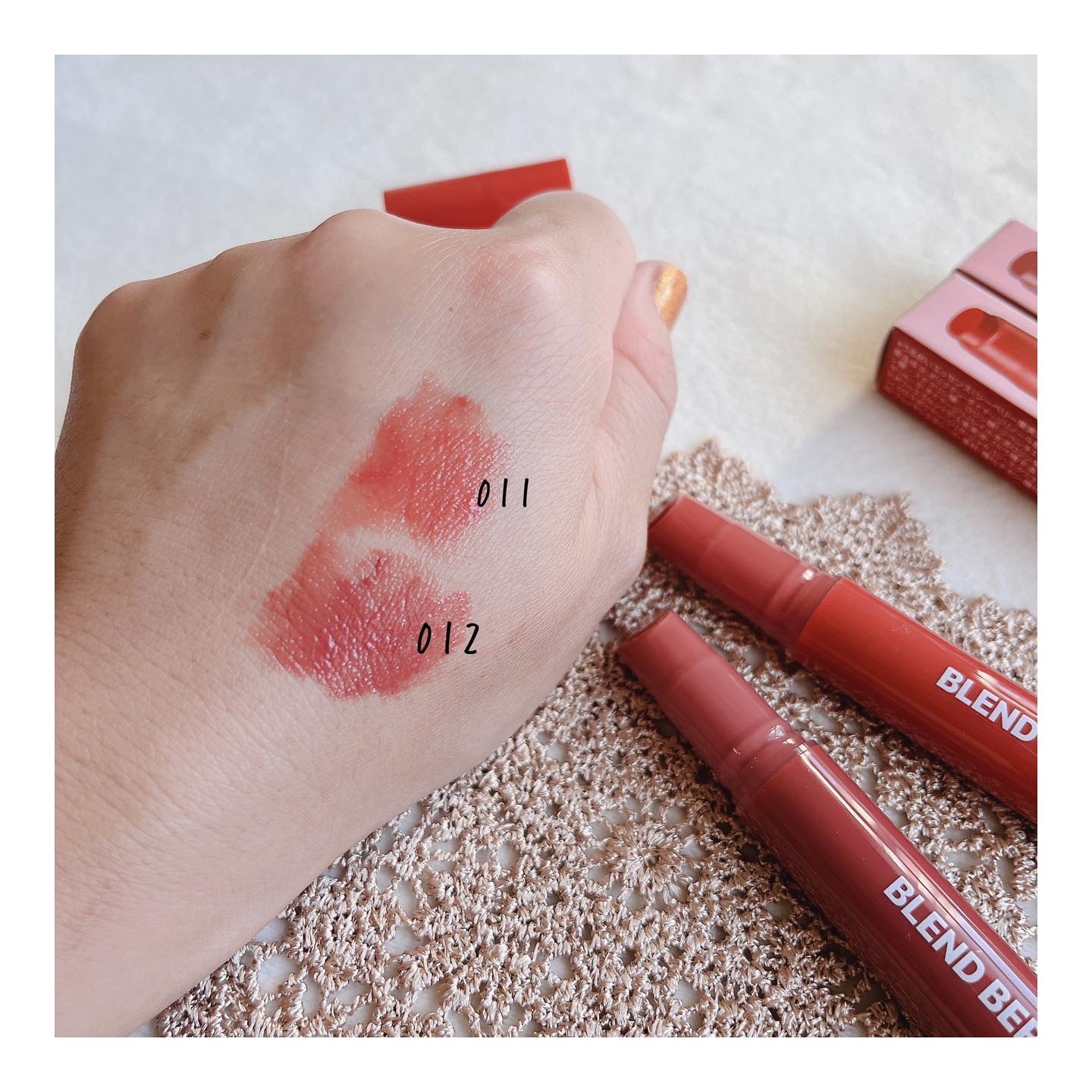 プランプ効果✖️ツヤ✖️濃厚保湿✖️とろけて高発色✖️ティント効果の5つの効果でぷっくり唇が持続してくれるんだそう。 唇にのせて滑らせるとすごくとろける感覚でとっても塗りやすいです。 011 センチなうるみピンクは、濃い夕焼けオレンジと空色が混ざった大人なピンク。