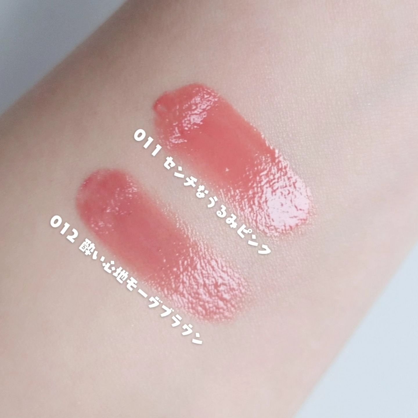 とろける感じの塗り心地なのと、重ねても色が濃くならないのが使いやすい♡ 疲れた感じのブラウンにならず、モーヴって紫系だっけ? あんまわかんないけど、明るさとブラウンが程よく発色してくれる感じ✮ 薄め発色だけど、これも使いやすい♪ 拭くとパールはちょっと唇に残ってるけどつけてる時は全然わかんないのが好き