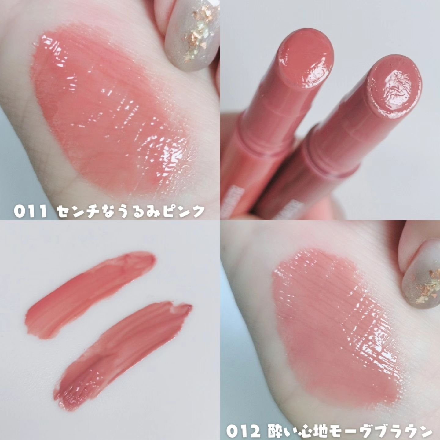 - <004 おめざめヌーディピンク> ポリブテン、ダイマージリノール酸(フィトステリル/イソステアリル/セチル/ステアリル/ベヘニル)、テトラエチルヘキサン酸ペンタエリスリチル、ヘキサ(ヒドロキシステアリン酸/ステアリン酸/ロジン酸)ジペンタエリスリチル、リンゴ酸ジイソステアリル、水添ポリイソブテン、炭酸ジアルキル(C14,15)、シクロペンタシロキサン、ダイマージリノレイル水添ロジン縮合物、トリイソステアリン酸ポリグリセリル-2、ステアリルジメチコン、合成ワックス、マイクロクリスタリンワックス、ジメチルシリル化シリカ、トコフェロール、パルミチン酸アスコルビル、ヒポファエラムノイデス果実油、ブドウ種子油、BHT、DPG、(アクリル酸/アクリル酸アルキル(C10-30))コポリマー、(エチレン/プロピレン)コポリマー、(ジメチコン/ビニルジメチコン)クロスポリマー、シリカ、ジメチコン、スクワラン、トリ(カプリル酸/カプリン酸)グリセリル、トリイソステアリン酸イソプロピルチタン、ハイドロゲンジメチコン、ホウケイ酸(Ca/Al)、メチコン、メントール、酸化スズ、水酸化Al、フェノキシエタノール、香料、マイカ、酸化チタン、酸化鉄、黄4、赤202、赤218、赤223 <005 いたずらまろみベージュ> ポリブテン、ダイマージリノール酸(フィトステリル/イソステアリル/セチル/ステアリル/ベヘニル)、テトラエチルヘキサン酸ペンタエリスリチル、ヘキサ(ヒドロキシステアリン酸/ステアリン酸/ロジン酸)ジペンタエリスリチル、リンゴ酸ジイソステアリル、水添ポリイソブテン、炭酸ジアルキル(C14,15)、シクロペンタシロキサン、トリイソステアリン酸ポリグリセリル-2、ダイマージリノレイル水添ロジン縮合物、合成ワックス、ステアリルジメチコン、マイクロクリスタリンワックス、ジメチルシリル化シリカ、トコフェロール、パルミチン酸アスコルビル、ヒポファエラムノイデス果実油、ブドウ種子油、BHT、DPG、(アクリル酸/アクリル酸アルキル(C10-30))コポリマー、(エチレン/プロピレン)コポリマー、(ジメチコン/ビニルジメチコン)クロスポリマー、シリカ、ジメチコン、スクワラン、トリ(カプリル酸/カプリン酸)グリセリル、トリイソステアリン酸イソプロピルチタン、ハイドロゲンジメチコン、ホウケイ酸(Ca/Al)、メチコン、メントール、酸化スズ、水酸化Al、フェノキシエタノール、香料、マイカ、酸化チタン、酸化鉄、黄4、赤202、赤218、赤223 <010 引き寄せロージーモーヴ> ポリブテン、ダイマージリノール酸(フィトステリル/イソステアリル/セチル/ステアリル/ベヘニル)、テトラエチルヘキサン酸ペンタエリスリチル、ヘキサ(ヒドロキシステアリン酸/ステアリン酸/ロジン酸)ジペンタエリスリチル、リンゴ酸ジイソステアリル、水添ポリイソブテン、炭酸ジアルキル(C14,15)、シクロペンタシロキサン、ダイマージリノレイル水添ロジン縮合物、合成ワックス、ステアリルジメチコン、トリイソステアリン酸ポリグリセリル-2、マイクロクリスタリンワックス、ジメチルシリル化シリカ、トコフェロール、パルミチン酸アスコルビル、ヒポファエラムノイデス果実油、ブドウ種子油、BHT、DPG、(アクリル酸/アクリル酸アルキル(C10-30))コポリマー、(エチレン/プロピレン)コポリマー、(ジメチコン/ビニルジメチコン)クロスポリマー、シリカ、ジメチコン、スクワラン、テトライソステアリン酸ポリグリセリル-2、トリ(カプリル酸/カプリン酸)グリセリル、トリイソステアリン酸イソプロピルチタン、ハイドロゲンジメチコン、ホウケイ酸(Ca/Al)、メチコン、メントール、酸化スズ、水酸化Al、フェノキシエタノール、香料、マイカ、酸化チタン、酸化鉄、黄4、赤202、赤218 <011 センチなうるみピンク> ポリブテン、ダイマージリノール酸(フィトステリル/イソステアリル/セチル/ステアリル/ベヘニル)、テトラエチルヘキサン酸ペンタエリスリチル、ヘキサ(ヒドロキシステアリン酸/ステアリン酸/ロジン酸)ジペンタエリスリチル、リンゴ酸ジイソステアリル、水添ポリイソブテン、炭酸ジアルキル(C14,15)、シクロペンタシロキサン、トリイソステアリン酸ポリグリセリル-2、ダイマージリノレイル水添ロジン縮合物、合成ワックス、ステアリルジメチコン、マイクロクリスタリンワックス、ジメチルシリル化シリカ、トコフェロール、パルミチン酸アスコルビル、ヒポファエラムノイデス果実油、ブドウ種子油、BHT、DPG、(アクリル酸/アクリル酸アルキル(C10-30))コポリマー、(エチレン/プロピレン)コポリマー、(ジメチコン/ビニルジメチコン)クロスポリマー、シリカ、ジメチコン、スクワラン、トリ(カプリル酸/カプリン酸)グリセリル、トリイソステアリン酸イソプロピルチタン、ハイドロゲンジメチコン、メチコン、メントール、水酸化Al、フェノキシエタノール、香料、酸化チタン、酸化鉄、黄4、赤202、赤218 <012 酔い心地モーヴブラウン> ポリブテン、ダイマージリノール酸(フィトステリル/イソステアリル/セチル/ステアリル/ベ