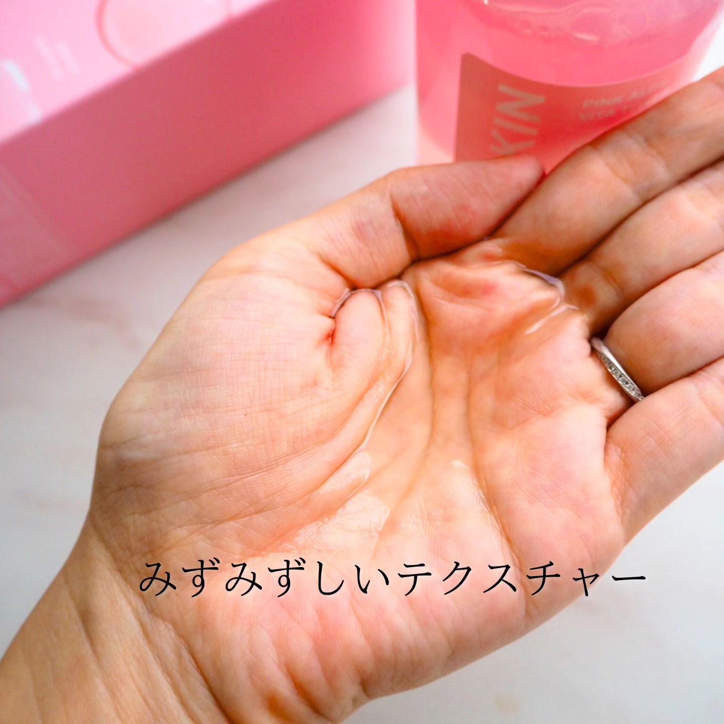 ピンクアロエエキス(アロエベラ葉水:保湿)80%&ナイアシンアミド(整肌)2%配合。更にビタミンCやパンテノールが含まれていて、乾燥によるトラブルケアやあとケアに特化されてるんだって。 さっぱりしたウォータリーテクスチャーですっと馴染んでしっとりするような使用感。 一年を通して使いやすいタイプ☺️