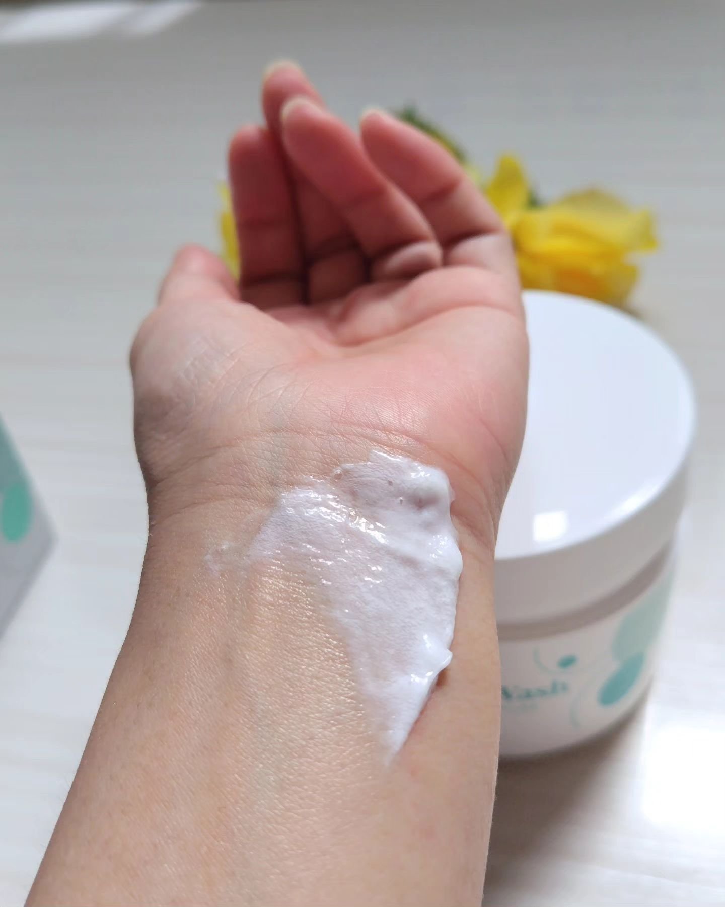 クリームタイプのボディウォッシュ😳! ピンポン玉大を手に取ってそのまま肌に伸ばして洗います👏 ボディクリームがいらないくらいもっちり潤いの洗い上がり🥰! スクラブと混ぜて使ったり泡立てて使うのもおすすめ🙌