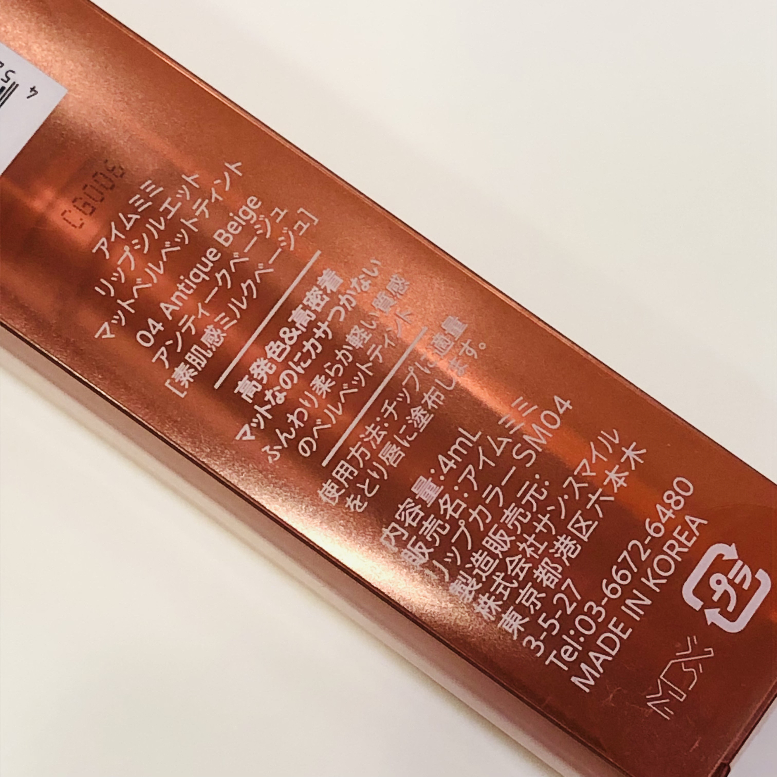 スルスル塗れるティントです! 高発色で少しぼかすのは難しく感じました。 19モスはイエベさんが使いやすいオレンジカラーなのです。つけている時は色の変化気にならなかったですが落ちると唇がピンクくなっているのでご飯食べた時などは塗り直しが必要かなと思います! マットですが質感的にはオイルっぽい感じで唇がマットっぽさを感じるとかはなかったですが、時間が経つと乾燥が気になりました(^^;;
