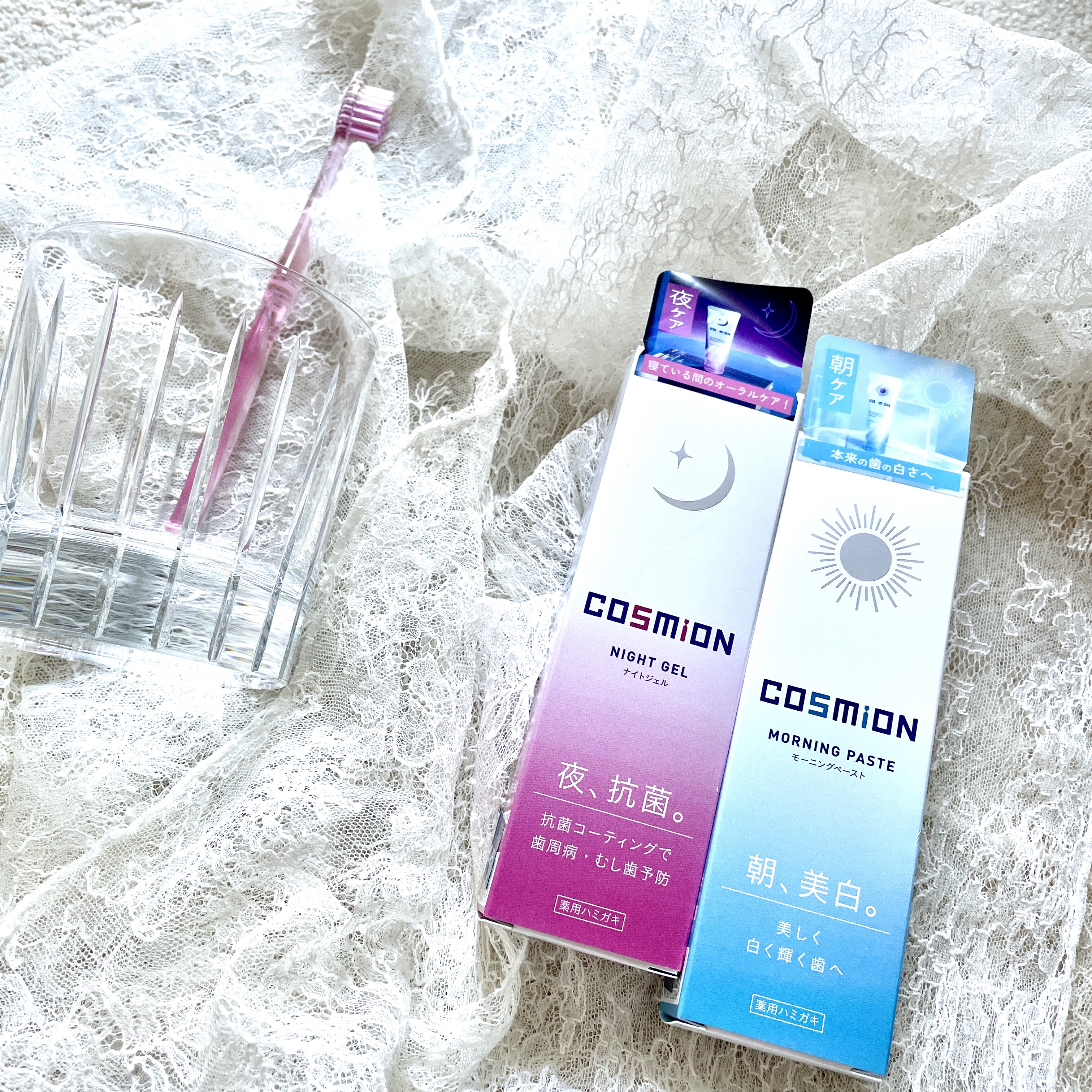 - COSMiONは ・汚れが付きやすい「朝」 ・菌が増えやすい「夜」 それぞれに適した歯磨剤を使い分けることで、口内環境を清潔に整えるオーラルケアブランドです。ライフサイクルに添ったオーラルケアを行うことで、健やかで美しい歯をサポートします。
