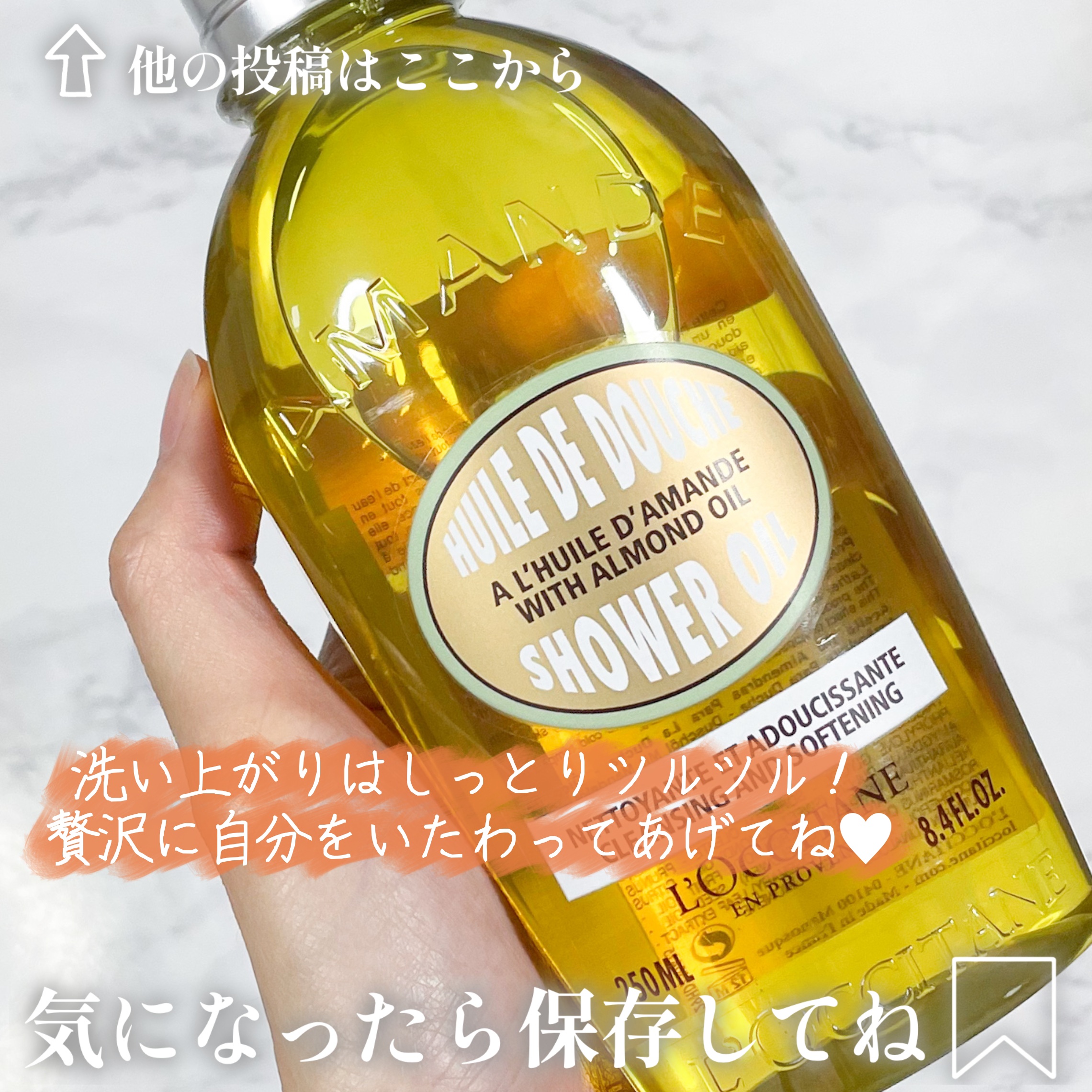 #PR#ロクシタンロクシタンアーモンドモイスチャライジングシャワーオイルオイルでなで洗いする新感覚「洗う」「うるおい感のある洗い上がり」「洗い上がりも続く香り」の3in1が叶えられるシャワーオイル洗い方は仕上がりの好みで選べる①泡立てずになで...