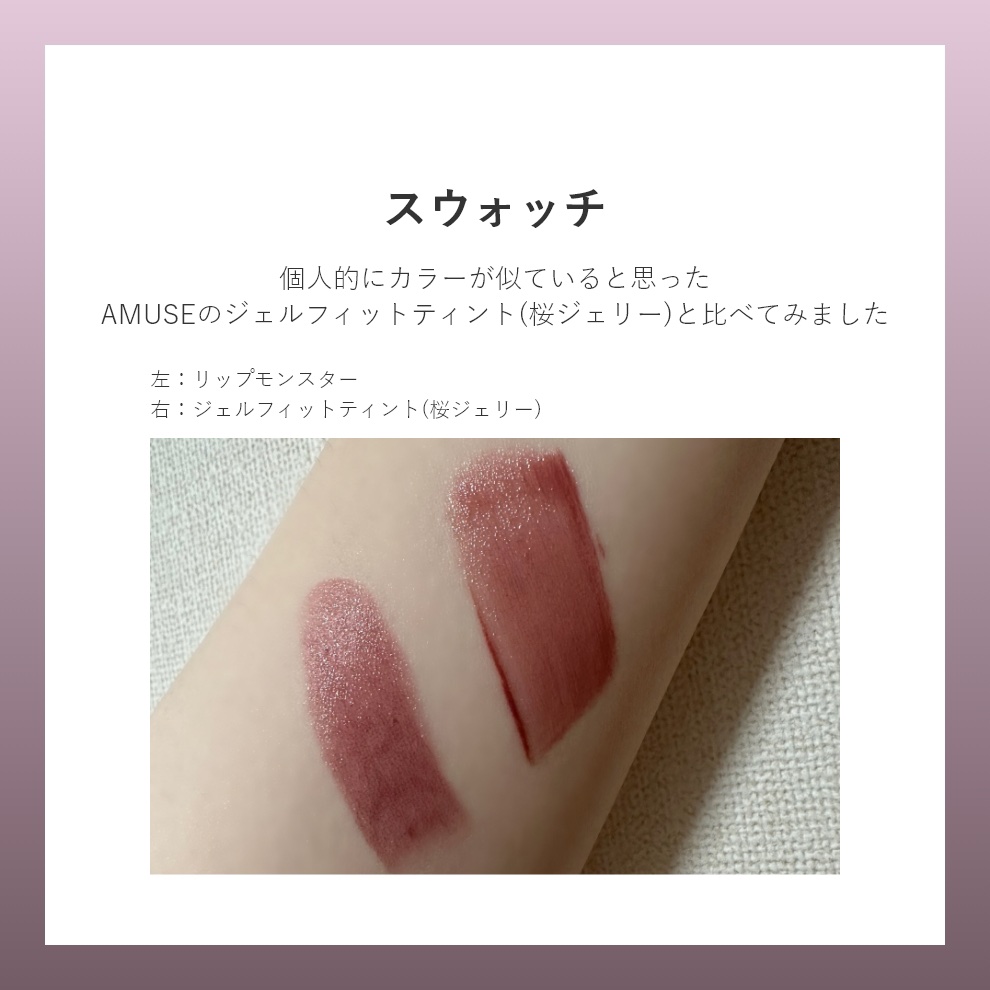 | 口紅・グロス・リップライナーランキング第58位 | ほんのりフルーツみたいな良い香りがします🍎 付けた感じのテクスチャーはぷるもち系ですね | 詳細を見る | |