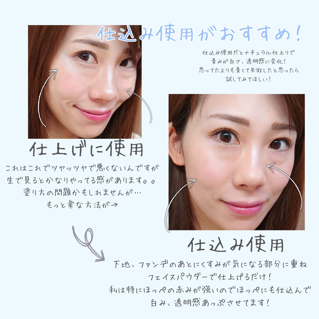 ジェルタイプは、他のスキンケアとの併用相性悪いとでポロポロしてきたりして苦手ですが、こちらは私の使ってる日焼け止めやファンデーションの相性も大丈夫でした! 最近の話題?のトレハロース配合!保湿感たっぷりで1日潤うし化粧のりも上がる気がする! めっちゃトーンアップするから時間ないときは下地抜いてもオッケ!めっちゃ艶肌になるよ! 一時は入手困難になっていたブルーの下地。 さり気なくパールが入っていて、色白になるけどのっぺりしにくいです。持ちが少し気になるので★4つ 他の色よりもハイライト効果高め!私は色補正としてフェイスパウダーの前に使うのがお気に入りです!透明感上がるしハイライト効果も穏やかになります!! ミストは細かくてふわっとしているので顔全体にまんべんなくスプレーできる! 白桃の香りが甘みもありつつも爽やかで夏にピッタリ!