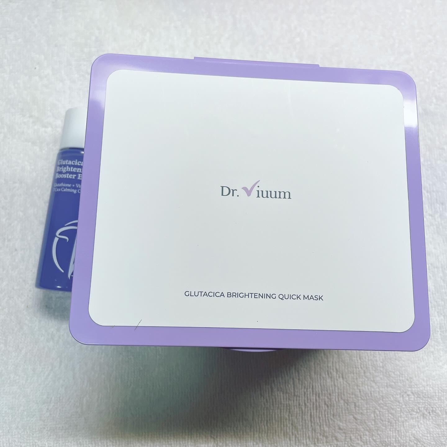韓国の大人気ダイエット食品ブランド【PRUMWELLNESS】のスキンケアライン「グルタシカ 白肌ケアマスクパック」ですが、ドクタービウムがマスクと高濃縮ブースターエッセンス30mlをセットにして扱っています。 99%高純度グルタチオンと5種類のブライトニング成分で美白対策を強化。7種類のシカ成分で鎮静。 人気の即時クーリングで−5.5℃の臨床試験完了。むくみやひきしめが気になる人にもおすすめ。
