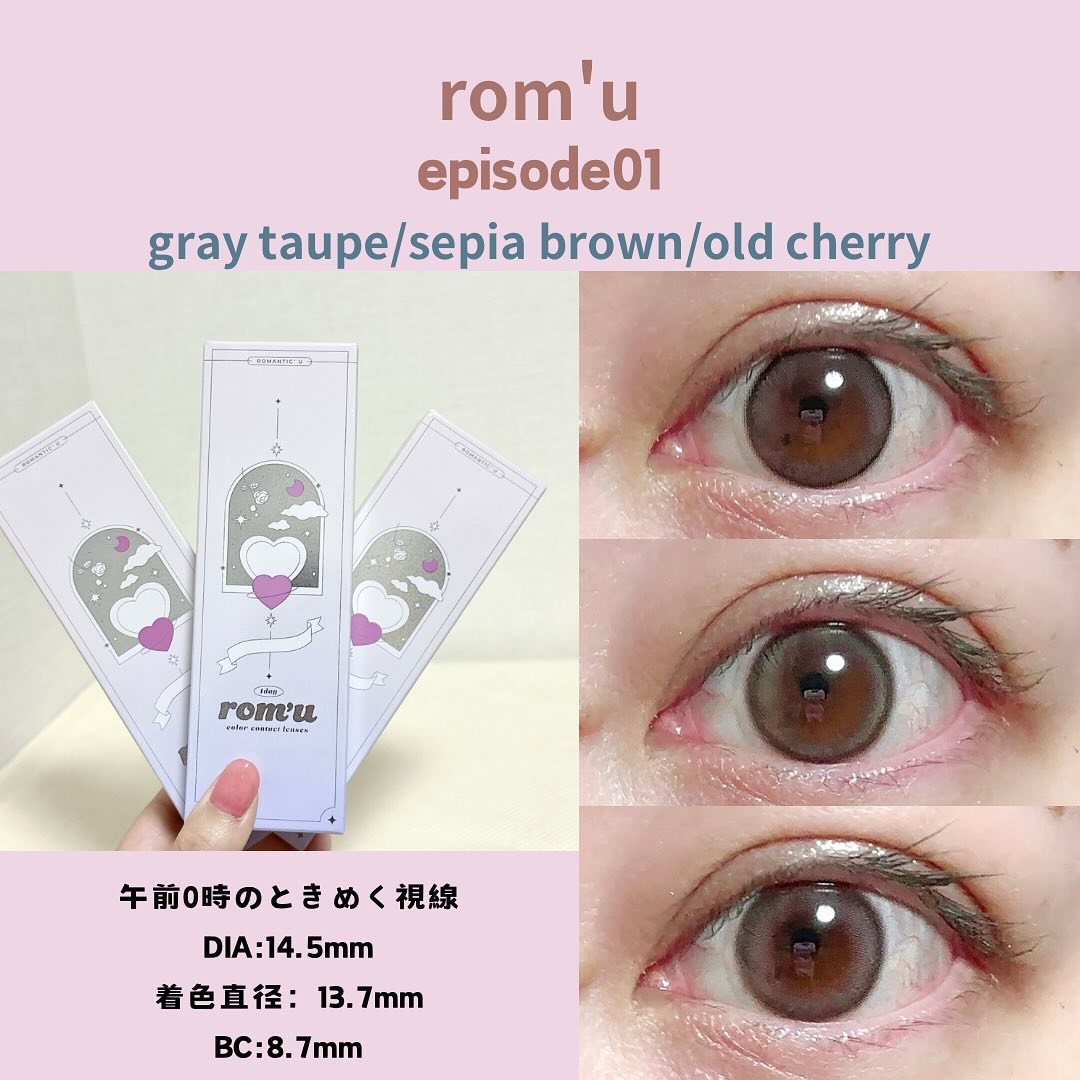 しっかり盛れる大きめのレンズ✨✨ 今回の投稿では欠品度数が続出した人気シリーズのrom’u episode01,02,03全カラー計9色をご紹介します🫧 太フチ×パープルカラーで甘さと存在感のある瞳へ💜 潤みピンク×ネイビーフチで自分の瞳の良さをいかす儚げレンズ🦋