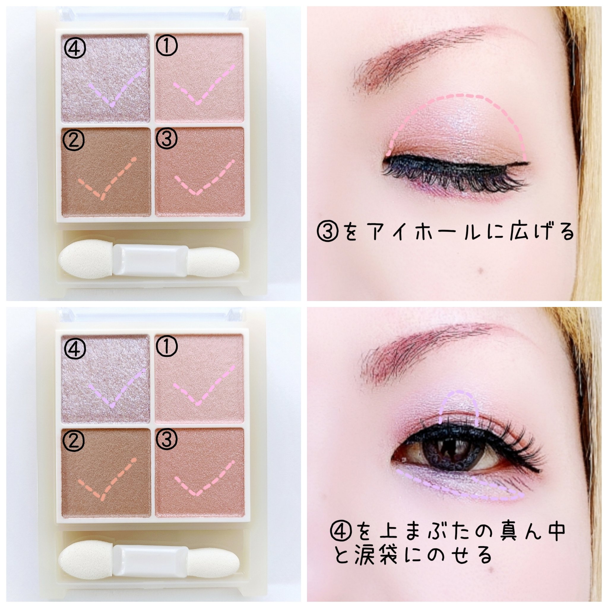プチプラのクオリティじゃないっ!! 発売前からチェックしていたけれど、ここまで可愛いとは…😆 絶妙カラーで目もとのくすみを飛ばして*明るい印象に🩷 横割りグラデーションでメイクし、立体感をより出したかったので最後に1番左のカラーを上まぶたの真ん中と涙袋にのせています🙆 肌馴染みも良くて粉飛びも感じにくかったです💕 ブラウンの方も店頭に出てたら買おうかな💓