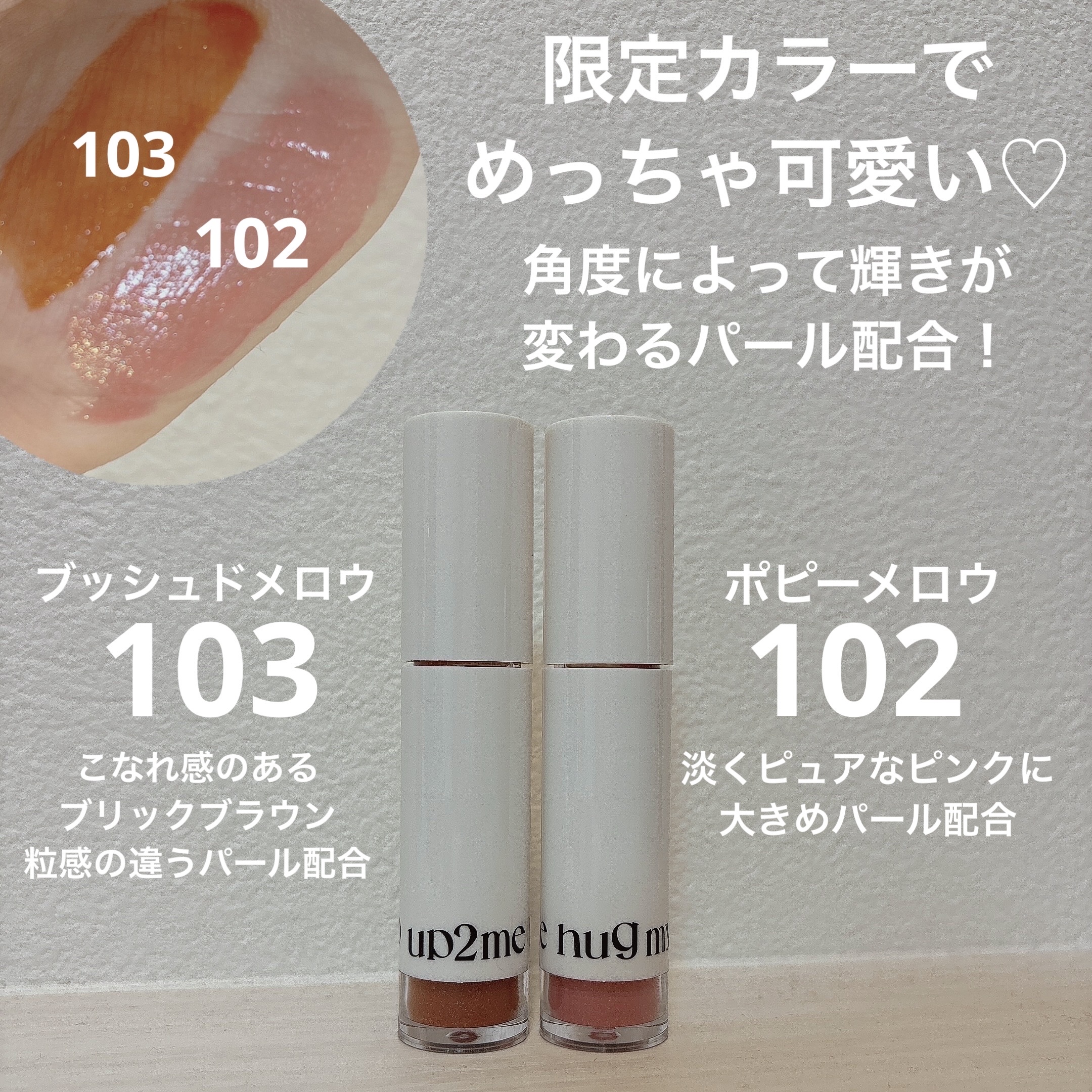 | 微粒子のラメがチラチラと輝いて超かわいい! 重たすぎないテクスチャーで、なめらかに塗れるのに プランプ効果はしっかり🙆♀️ | 詳細を見る | ||