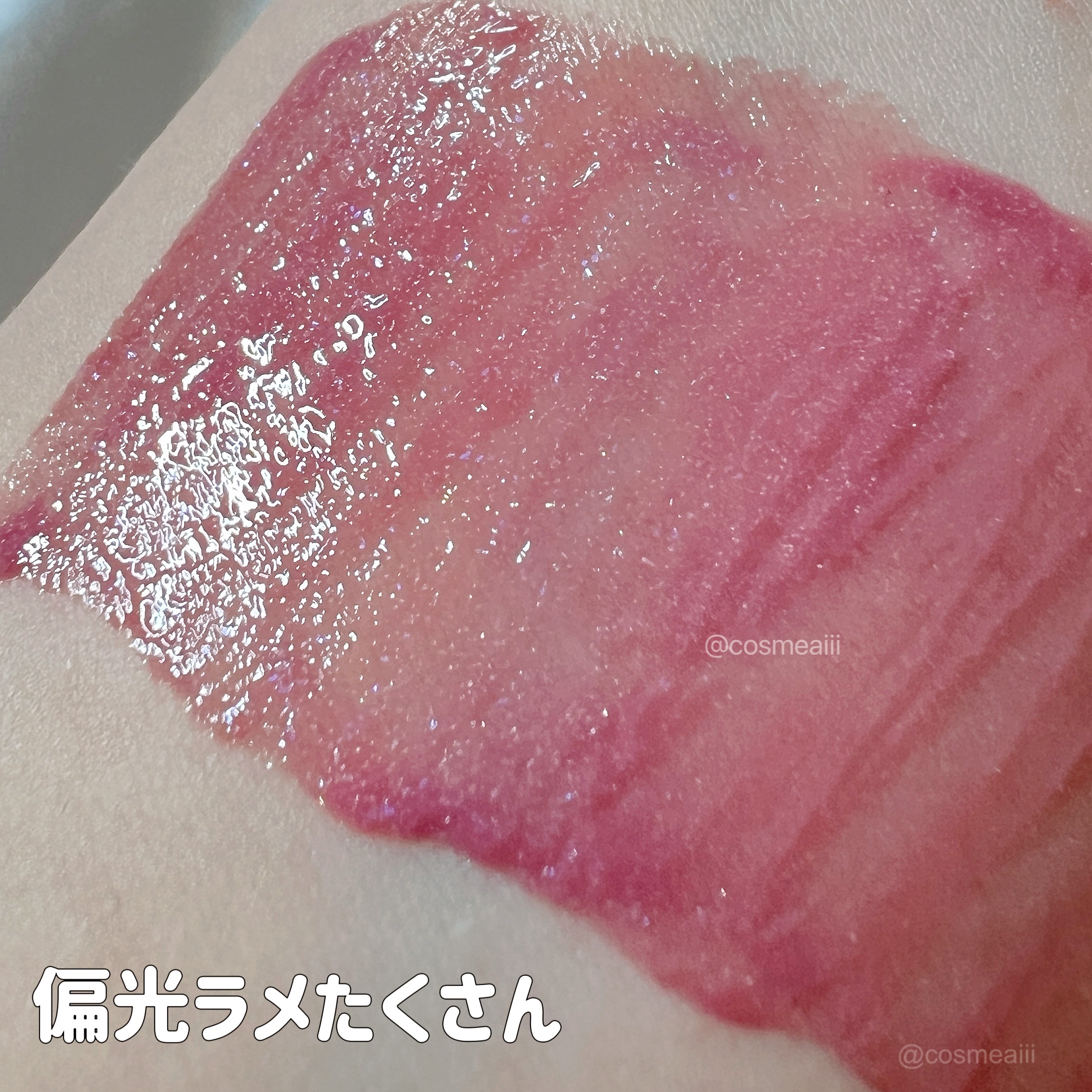 白いパケで開けるところがゴールデンピンクになって、 まるでデパコスみたいな質感🥺💕💕💕 ツヤタイプ 塗ってしばらく置いたら膜ができてツヤも色持ちもずっとキレイに残る 色持ち良いです。ツヤ無くなっても色がそのままキレイに残る 匂いはお花の香りです。 保湿力はかなり高いと思う◎