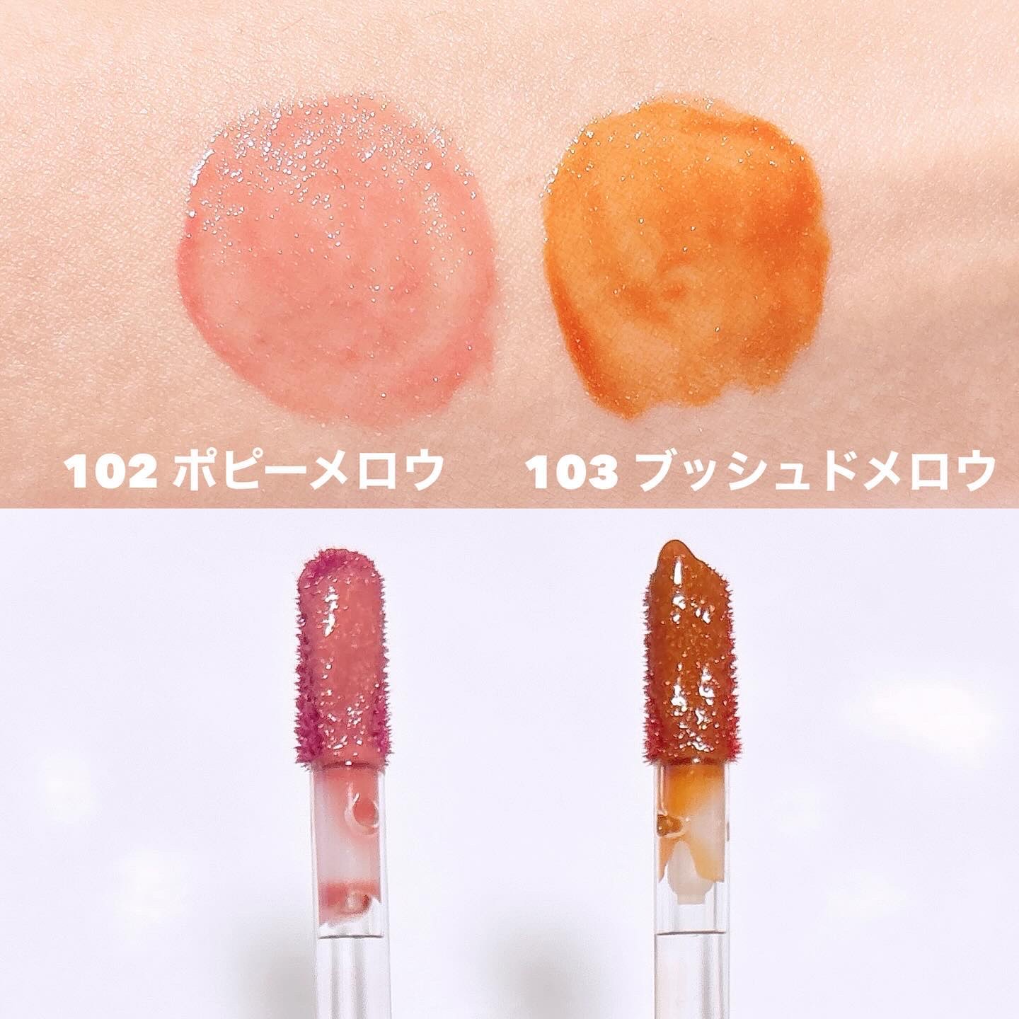 フルーツキャンディーのようなクリア発色、ツヤ感あふれるグロウリップティント全色レビュー🍬*⋆ クリアキャンディコーティング処方であめ玉のようにクリアで厚みのあるオイルベールで、ジューシーな唇に💋𓈒𓋜 秋冬にぴったりなヌーディーなカラーもあってツヤ感リップが可愛すぎる!🍁☃️