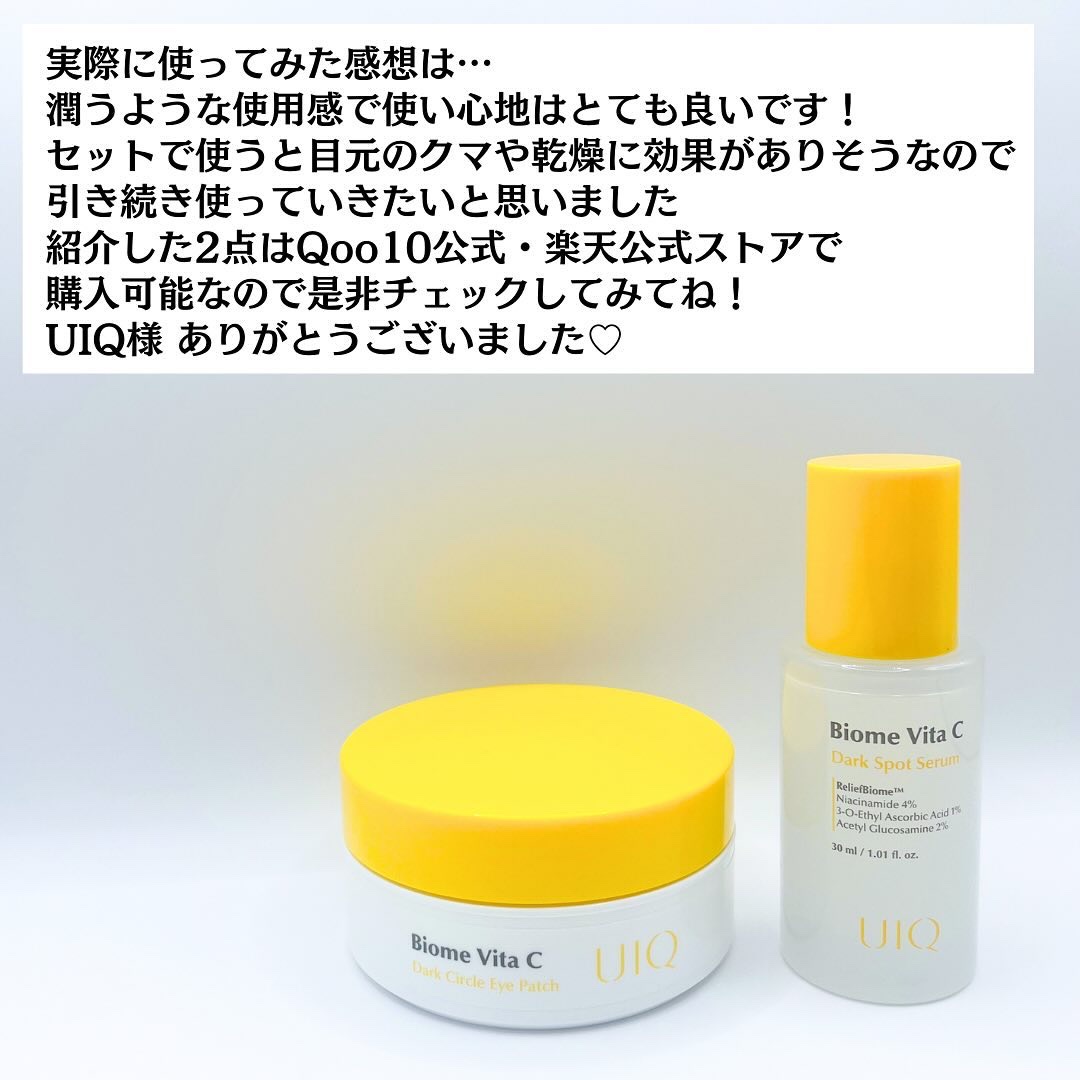 UIQ様の2月モニター第2段にてバイオームビタCダークスポットセラムバイオームビタC黒クマアイパッチをいただきました。♡バイオームビタCダークスポットセラム低刺激ビタCのエナジーで明るさチャージ!生き生きとした透明感溢れる肌へアプローチ。肌全...