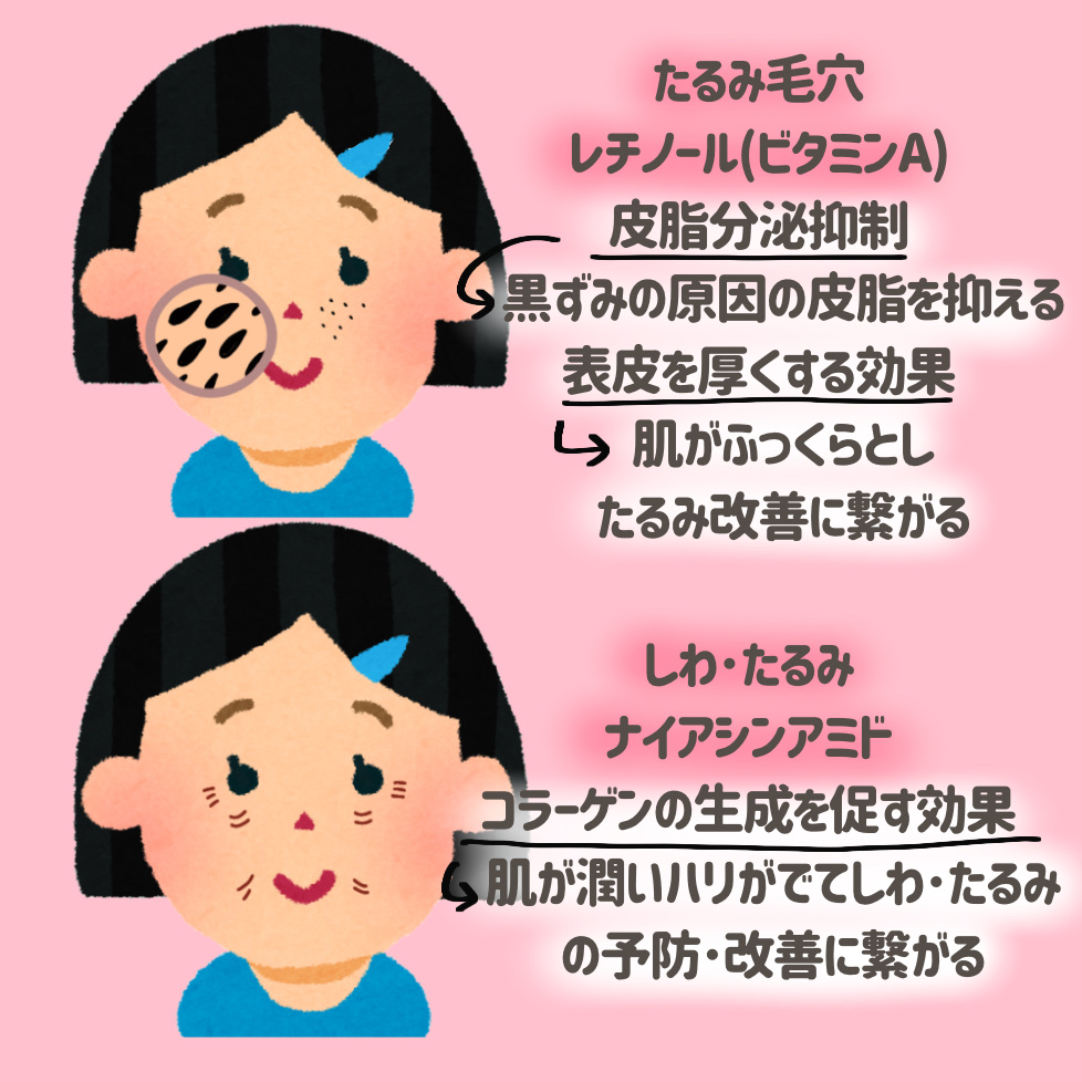 最近ちょうどニキビできちゃったから助かる〜💞 ビタミンcとか結構万能だよね〜!!!! ナイアシンアミドなんかエイジングケアにいいって聞いたことある〜😄