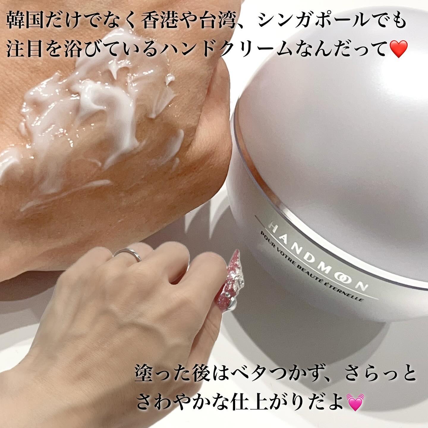 - 話題の、手の甲のためのハリケアハンドクリームです。 独自のハリ・弾力ケア成分やナイアシンアミド*1を含んでおり質の高い管理*2が可能なプレミアムクリームです。 ハンドムーンクリームで美しく若々しい印象の手肌へ。 *1整肌成分 *2お手入れのこと