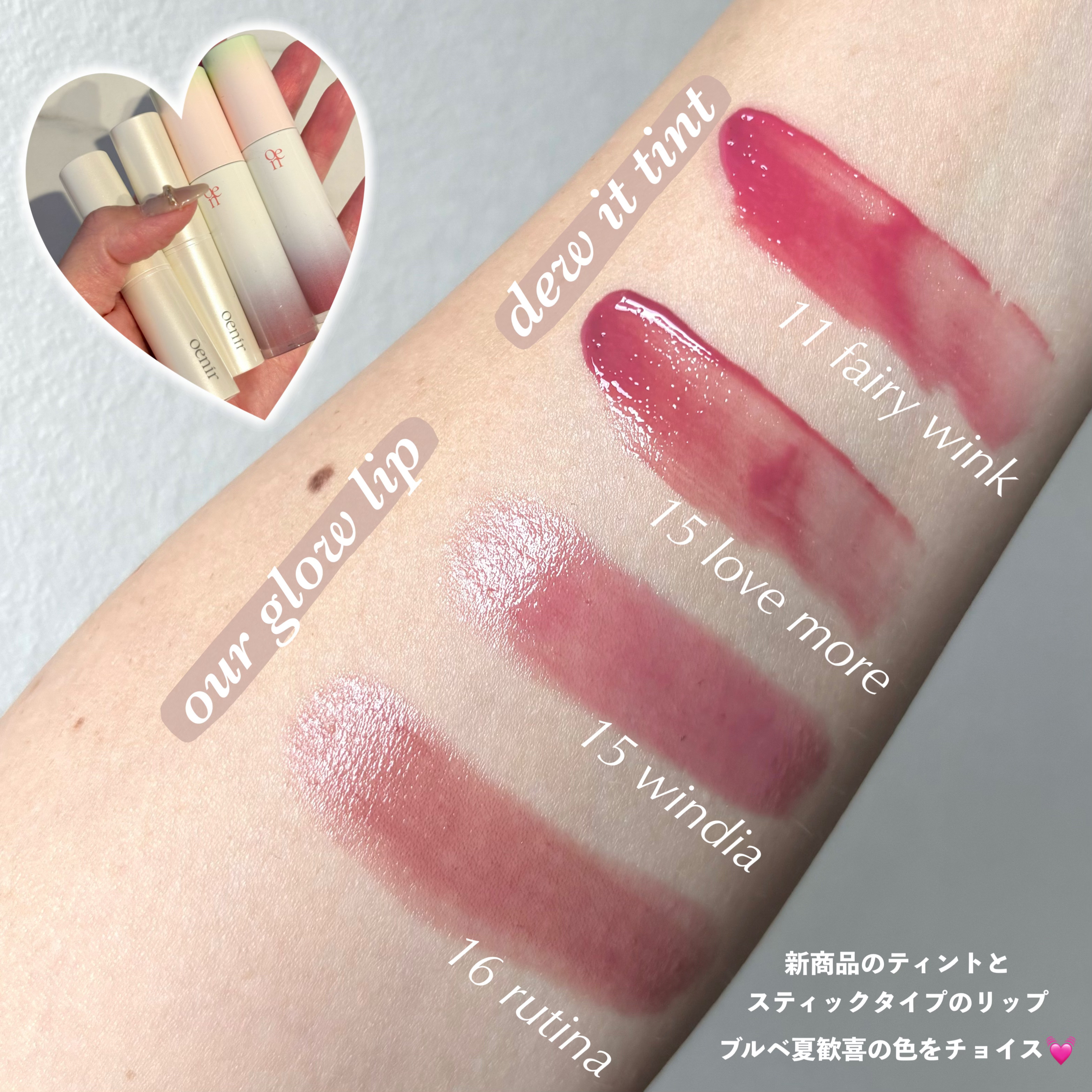 oenirデュウィットティント15ラブモアメガ割でおすすめのリップティント/韓国の有名なYouTuberヒジュと共同開発したらしい妖精の羽をモチーフにしたデザインが可愛い♡透明感たっぷりでベタつきなく密着使いやすい色でお気に入り!#Qoo10...