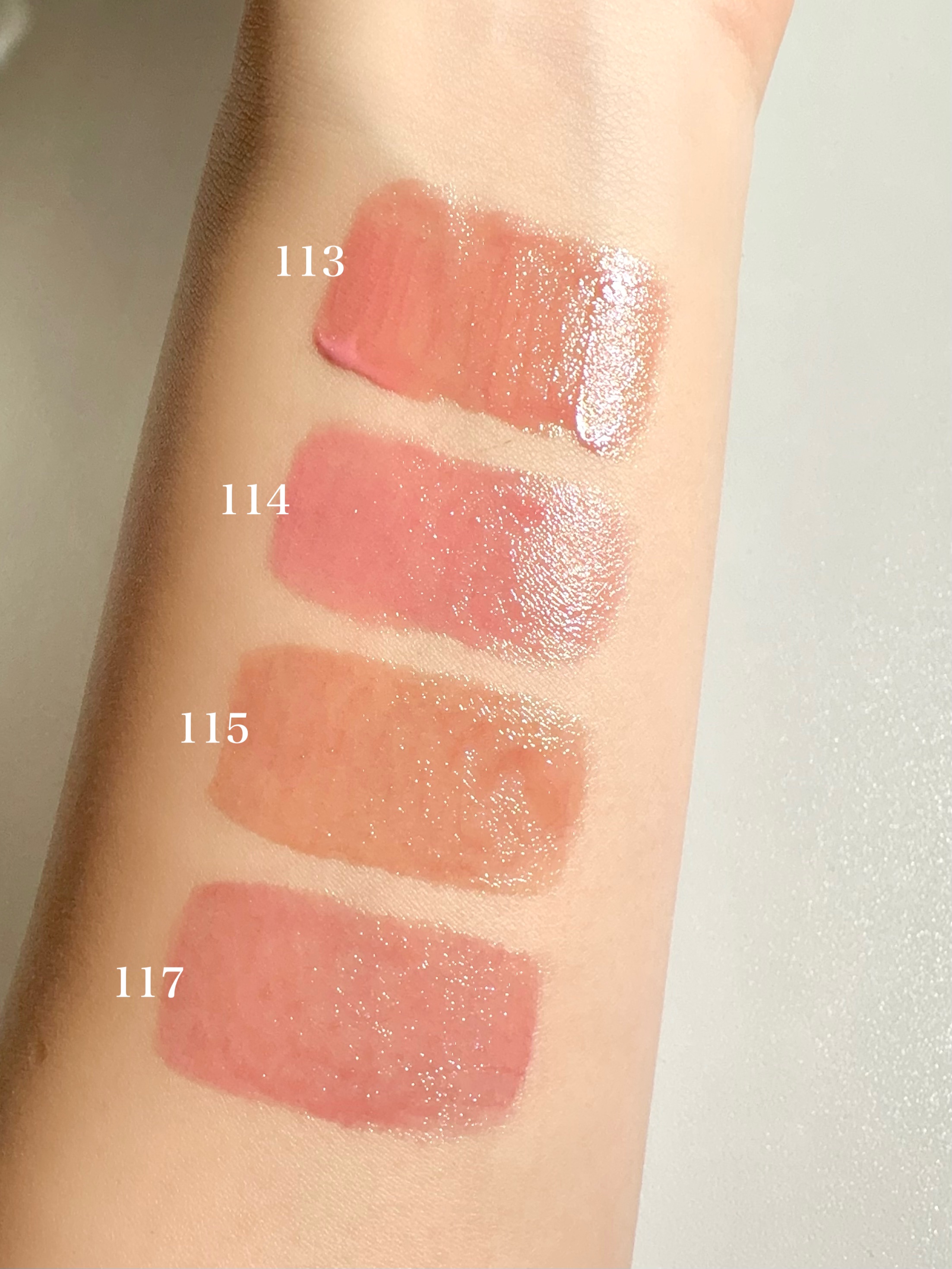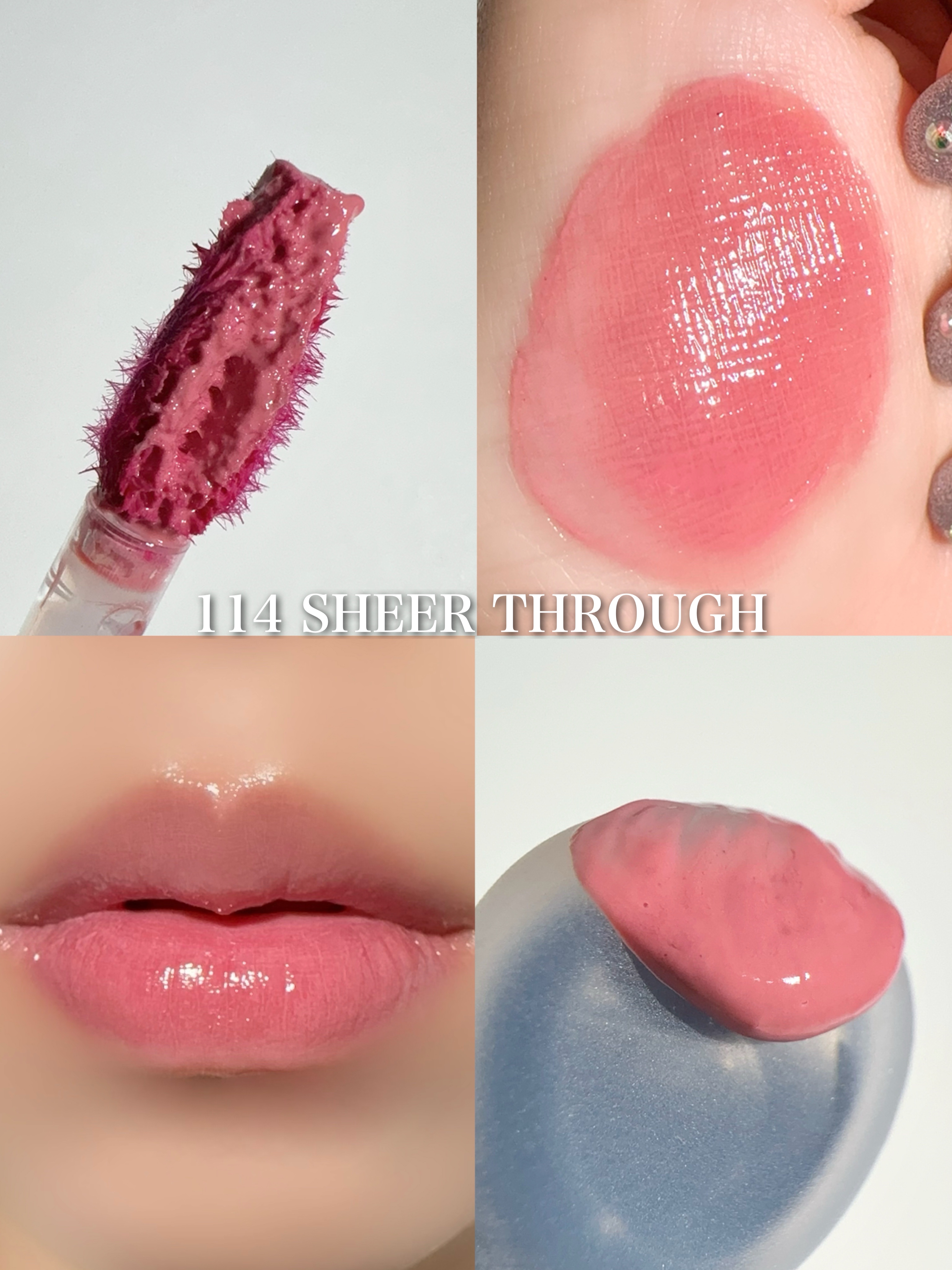 ねっちょりボリューム感あるテクスチャーだけど、ベタつきなく使いやすい。 ティントじゃない普通のグロスだから色もちは良くない。 発色ナチュラルだからこれだけでもいいけど、他のリップと合わせても可愛い!!