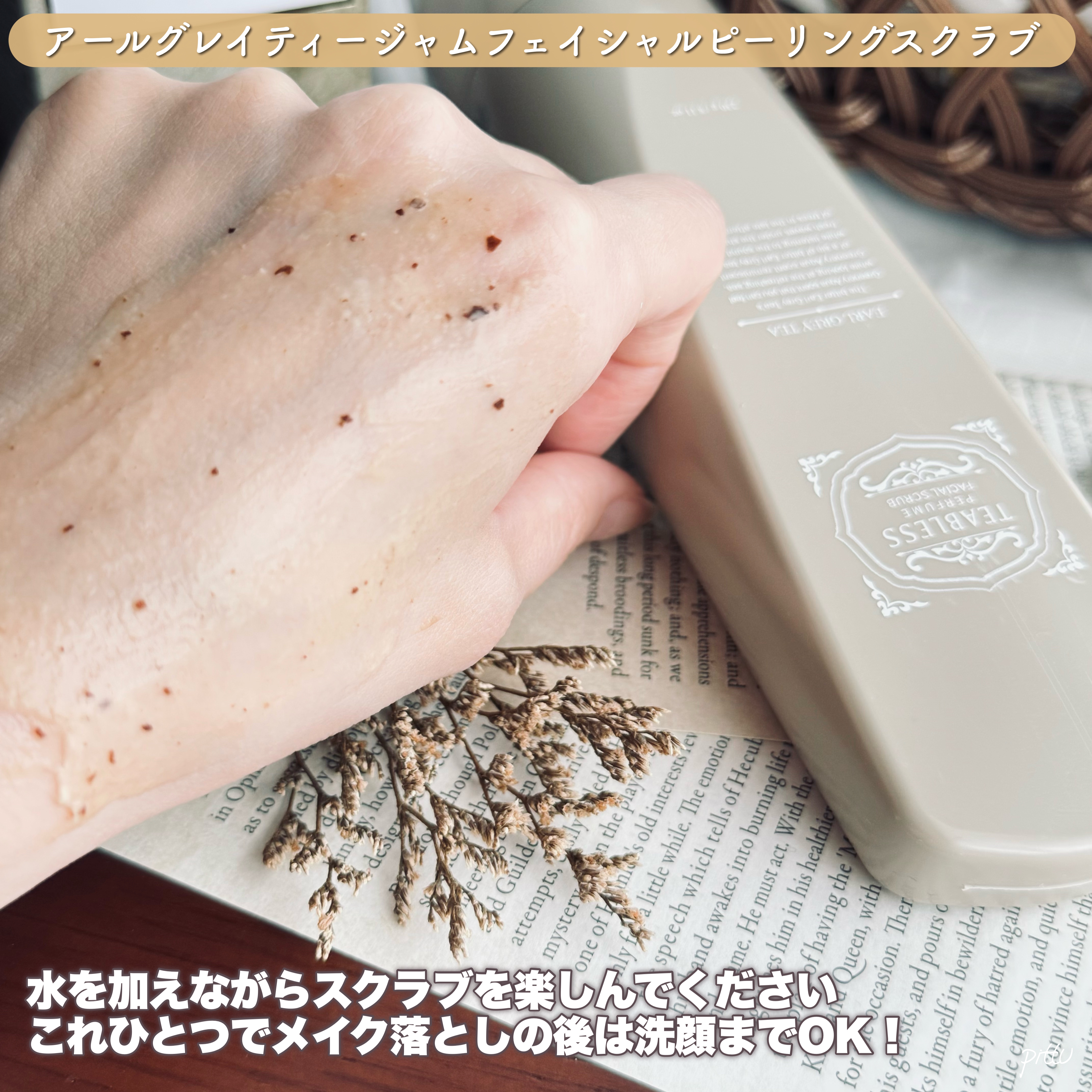 アールグレイティーの香りがぶわーっと香るの🥹 あまーい濃い目のアールグレイティー🤎🤎 デイリー使いOKのマイルドなフォーミュラ!紅茶の茶葉のスクラブが心地よく、低刺激◎ パケも紅茶みたいで可愛くてプレゼントにしても喜んで貰えそうだな~♩♩