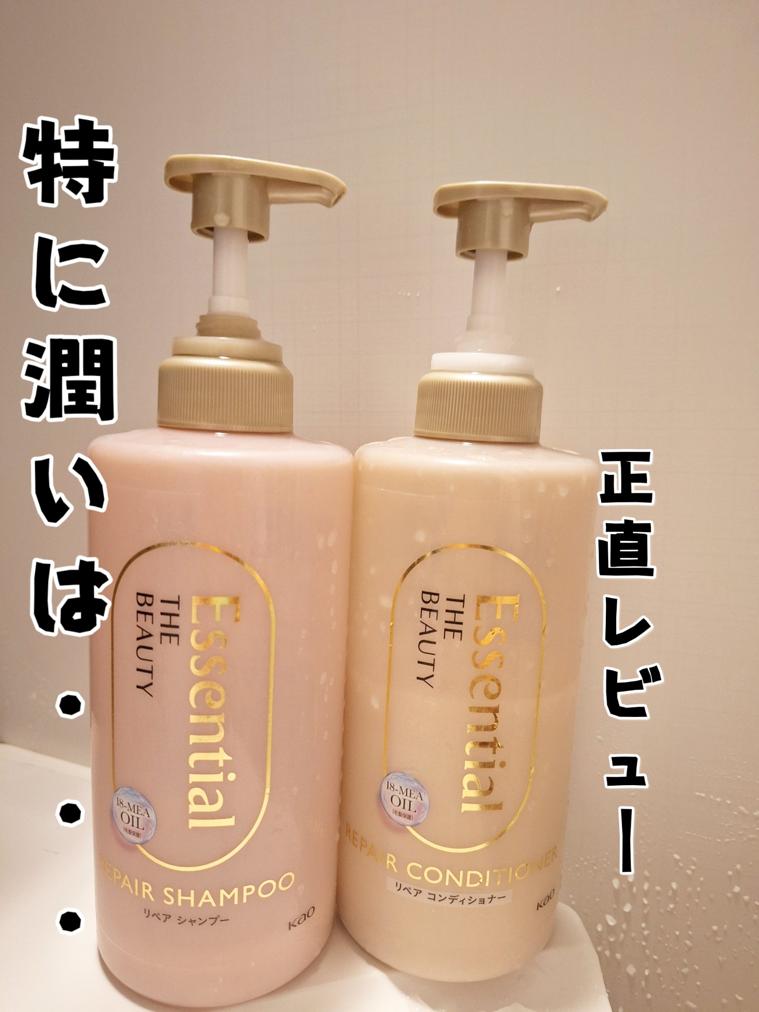 つやつやになるわけでもないです。 どちらかというとサラサラ系でした。 ちゃんとトリートメントしないと特に毛先がパサつきます。 エッセンシャル ザビューティ リペアシャンプー・コンディショナーはいい香りだけど万人受けはしないかも… シャンプーはとろんとしていて、コンディショナーはもったりしています。 リピなしです。