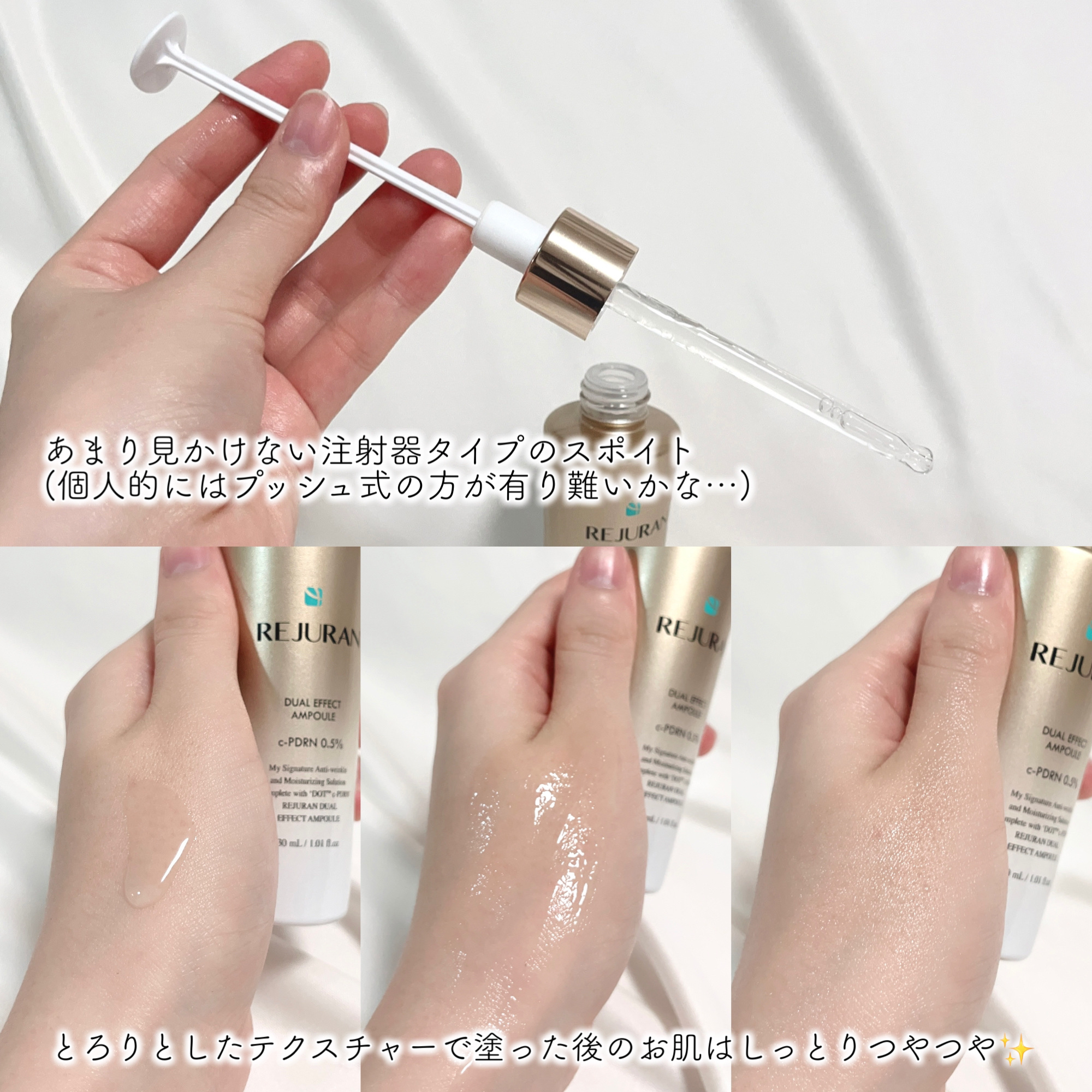 【スキンケア】REJURANデュアルエフェクトアンプルPDRNといえばリジュラン!そんなリジュランのゴールドに輝くデュアルエフェクトアンプル!パッケージから高級感がスゴイです!結構このタイプのスポイトは珍しいので一瞬迷いましたが回すだけでした...