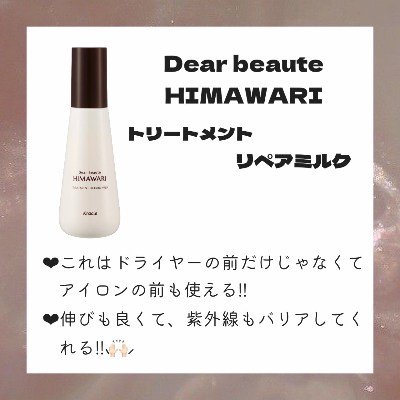 | ヘアケア・スタイリングランキング第55位 | 髪の毛がまとまりやすく、扱いやすくなった感じがして嬉しい🥰 べたつかないさらっと軽やかな使い心地で、手もべたつないから終始快適 | 詳細を見る | |