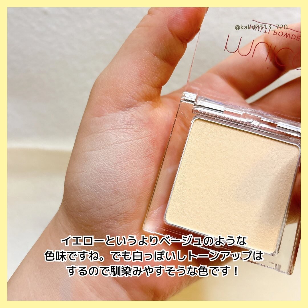パウダータイプって超使いやすい!!😳 気になるクマに、幅の狭い平筆でサッと。厚みのあるパウダーなのが特徴的! 光の効果でさらに綺麗にみせてくれる。 このしっとりさはかなり扱いやすい🥺 目の下は乾燥しづらいのがいいよね。シワが気になる方は欲張らずに、少しずつ使ってみるといいかも!! しかも990円ってーー😂✨ ありがとうすぎる。これは今後も使っていきたいアイテム😍😍