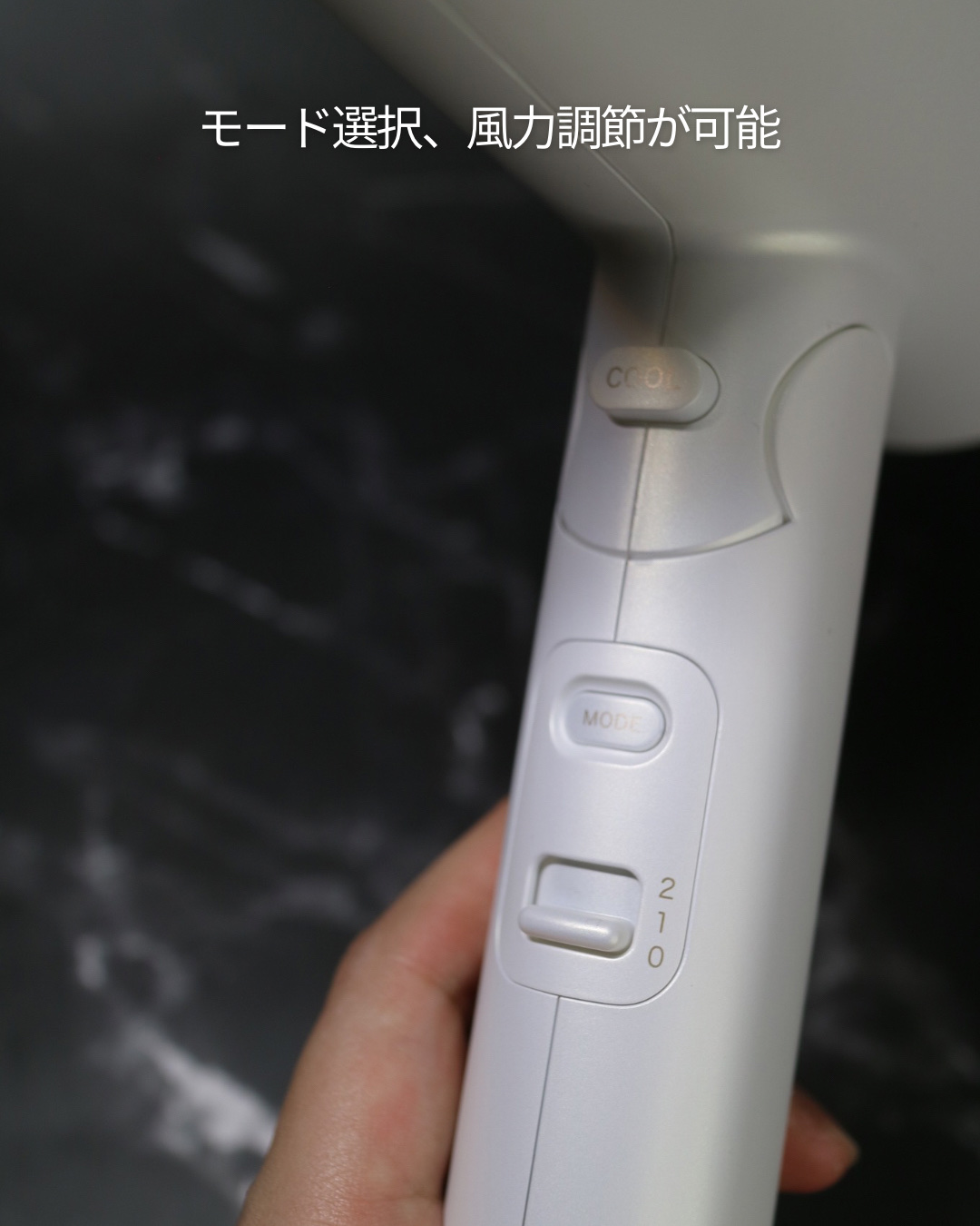- スムーズEXフィルターで、 上質でなめらかな触り心地。髪の美しさを整える「モッズ・ヘアドライヤー スムーズEX」 せっかく染めてもなかなかキープできないヘアカラー。 髪の水分バランスを整えるマイナス電子、オーバードライを防ぐ低温ドライの効果で、お気に入りの髪色をキープしやすく。 【もっとツヤめく髪へ】 サロン帰りのようなツヤが簡単に。 短めの低温風(約58℃)と長めの冷風が交互に自動で切り替わるサロンモード(温冷自動切替モード)で髪の表面のキューティクルを整え、ツヤのある指通りのいい髪へ。 【その他の便利な機能】 ・選べる5つのモード 5つのモードを搭載、髪への負担を少なく乾かしたい、素早く乾かしたい、仕上げをよくしたい、地肌もケアしたい、5つのモードで選べる使い方が可能に。(スムーズ/サロン/ホット/ケア/クール) ・電源スイッチ 0: OFF / 1: 弱風 / 2: 強風 ・クールスイッチ 直感的に使えて、使いやすい ・お手入れ簡単フィルター お手入れしやすいメッシュフィルター採用 ・丈夫なゴムコード ・折りたたみ・軽量モデル 折りたたみモデルだから、収納も簡単
