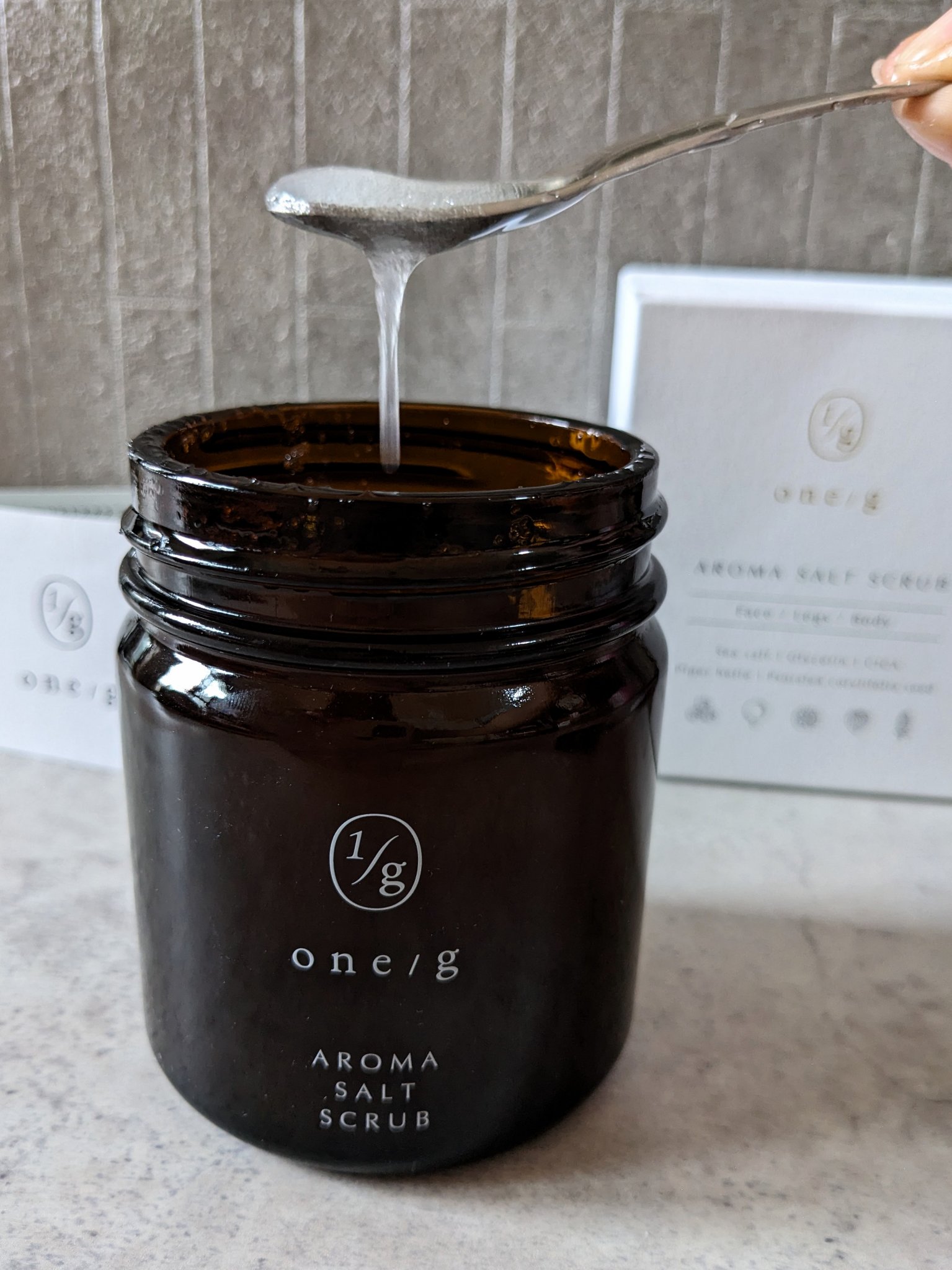 オイル層とソルト層の2層になっている珍しいタイプのソルトスクラブ。 とろ〜っとしていて、よく見るソルトスクラブとはちょっと違うよね! 優しく&しっかりスクラブで身体をケアしてそのまま湯船に!半身浴すると、じんわ〜りとスクラブが溶け出してお肌めちゃんこなめらか✨✨ 天然のアロマの香りがとーっても上品でほのかで、マインドフルネス〜🧘って感じ✨✨