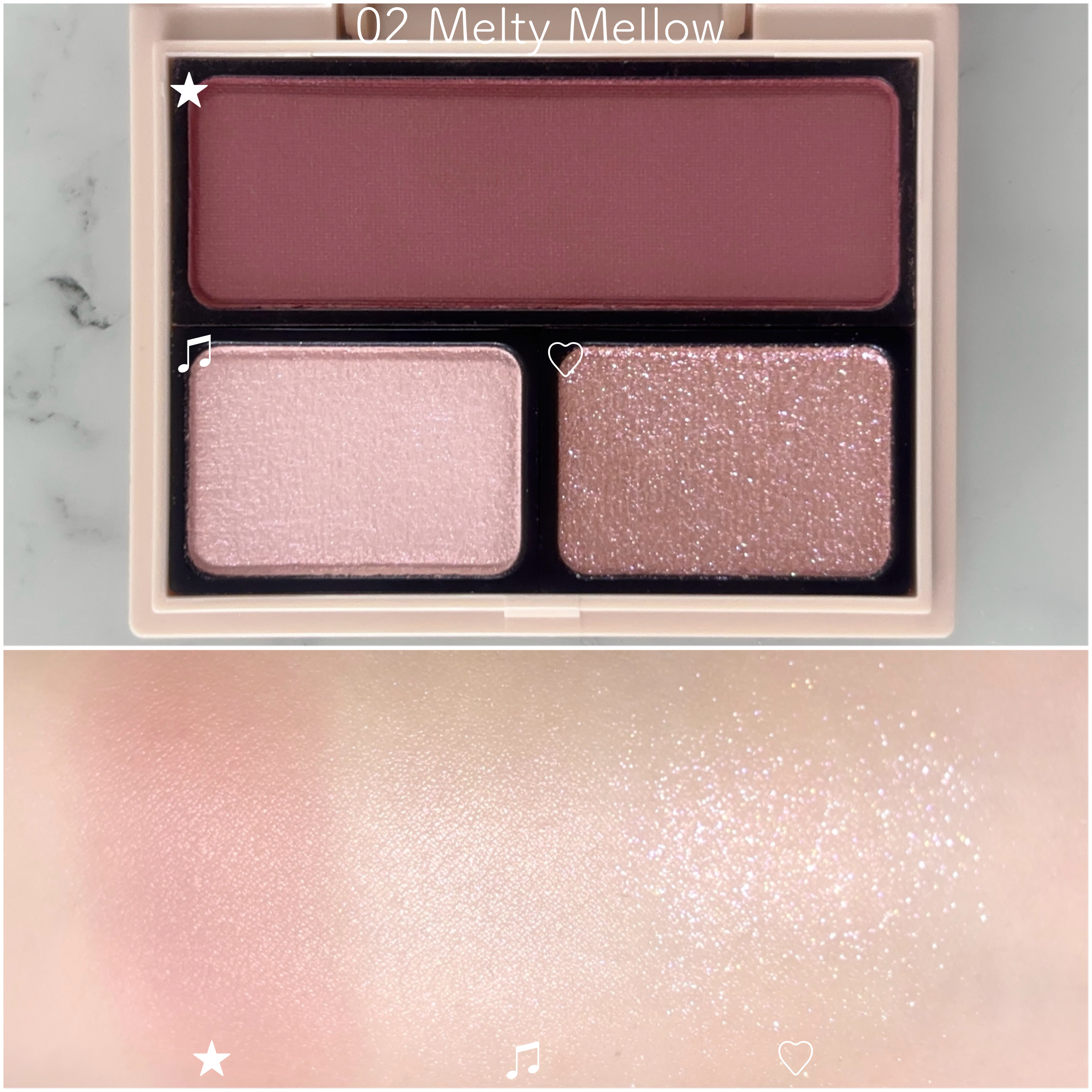 - 異なる3つの質感と色のレイヤードを楽しめるアイカラーパレット。 ■柔らかな質感でまぶたに溶け込むように馴染むマット ■目元のくすみを飛ばす(*1)偏光パール配合のシマー ■異なるサイズの立体的にきらめくラメ 保湿美容成分(ヒアルロン酸Na・ホホバオイル(*2))配合。 *1 メイクアップ効果による *2 ホホバ種子油