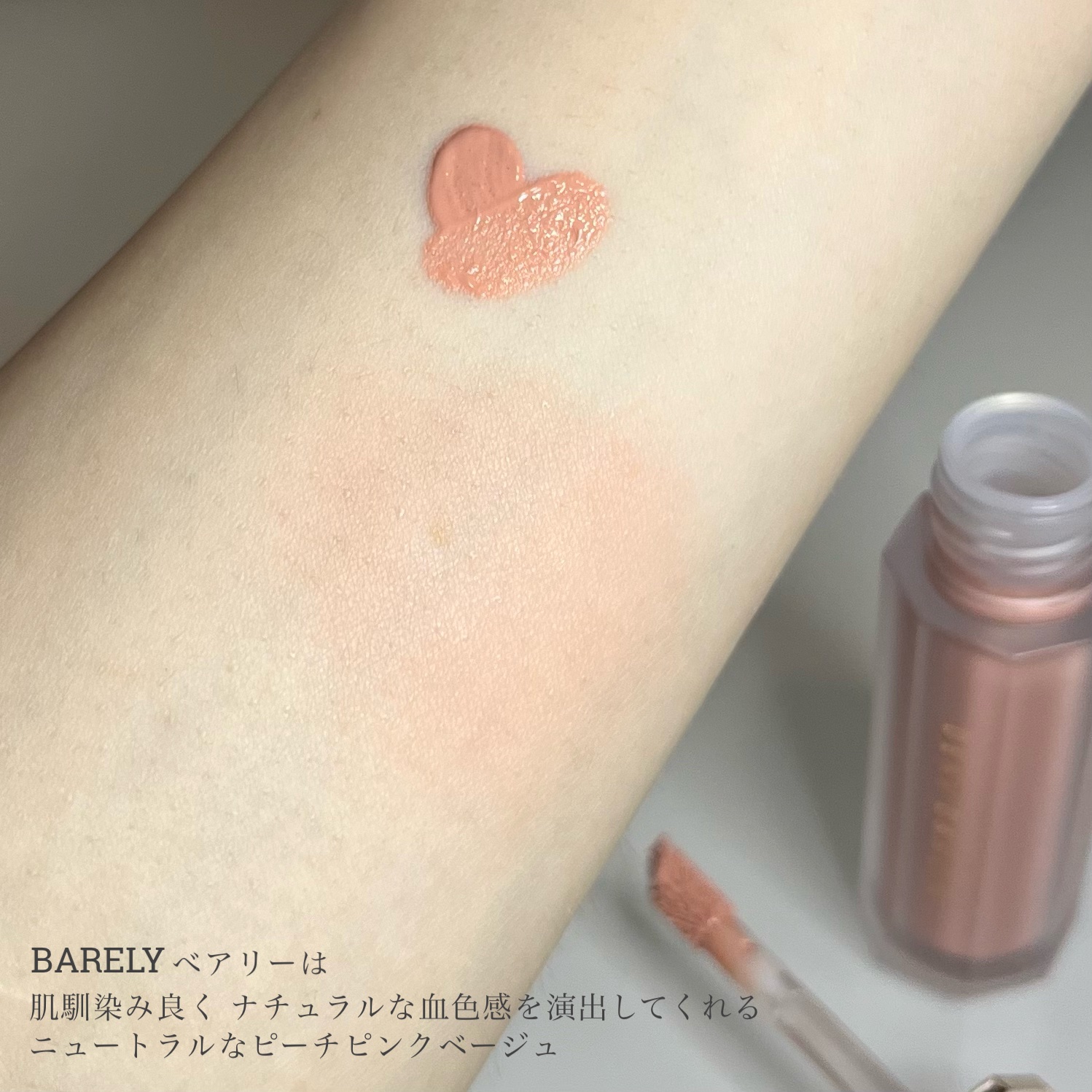 - ・花びらのような血色感をもたらすウォーターリキッドブラッシャー ・ウォータリーテクスチャーでツヤ感を出しながらナチュラルにレイヤリングが可能 ・持ち運びが便利でいつでも血色感をプラスできる ・チーク初心者でもナチュラルに発色するので安心! ・ダリア花抽出エキスのスキンコンディショニング作用によってお肌をケアしながらメイク可能。 ブルベオススメカラー/BARELY×TAFFY イエベオススメカラー/BARELY×DREAMY
