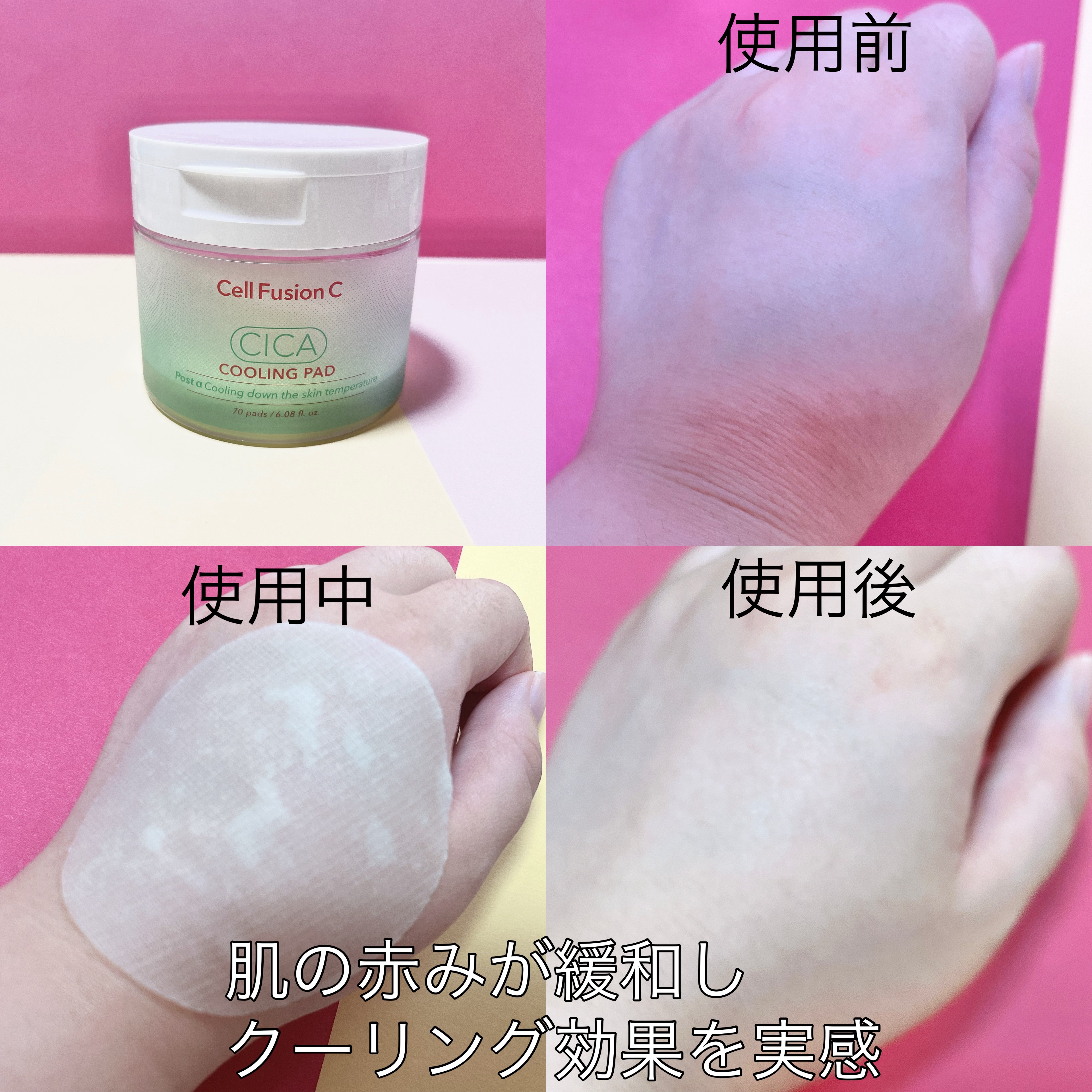 CellFusionCシカクーリングパッド@kina.jpn様から提供して頂きました。ふかふかした厚めのパッドで液がたーっぷり含んでいるからお肌に載せるとみずみずしい使用感😊クーリング成分配合で、お肌が速攻スースー✨️もぉなんなら頬っぺたが寒...