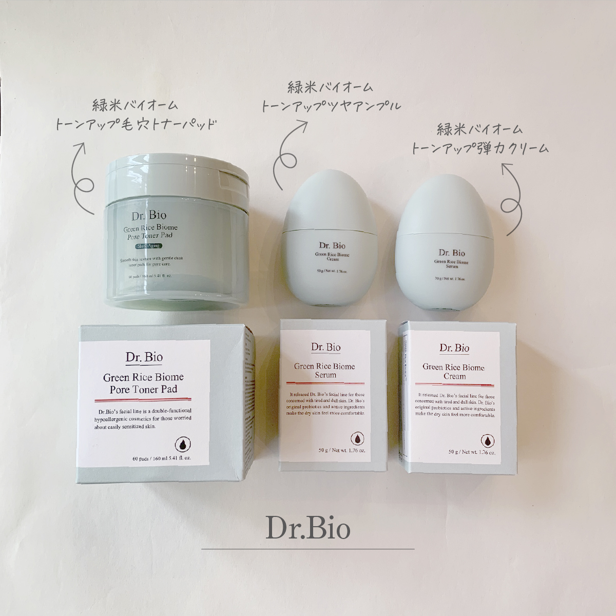 敏感肌でも安心して使えるアイテムたち🥰 緑米バイオーム™トーンアップスキンケアシリーズは「古代米」と呼ばれる緑米エキスと、Dr.Bio独自のプロバイオティクス成分のPREBIOME™配合の新感覚トーンアップスキンケアライン! 毛穴・弾力・保湿までオールインワンケアできるパッド🎶 リオセル面はガーゼのような触り心地で角質ケアに◎ 保湿やトーンアップ、お肌の保護までこれ1本! メイク前にこれを仕込むことで、ツヤ肌完成🥰