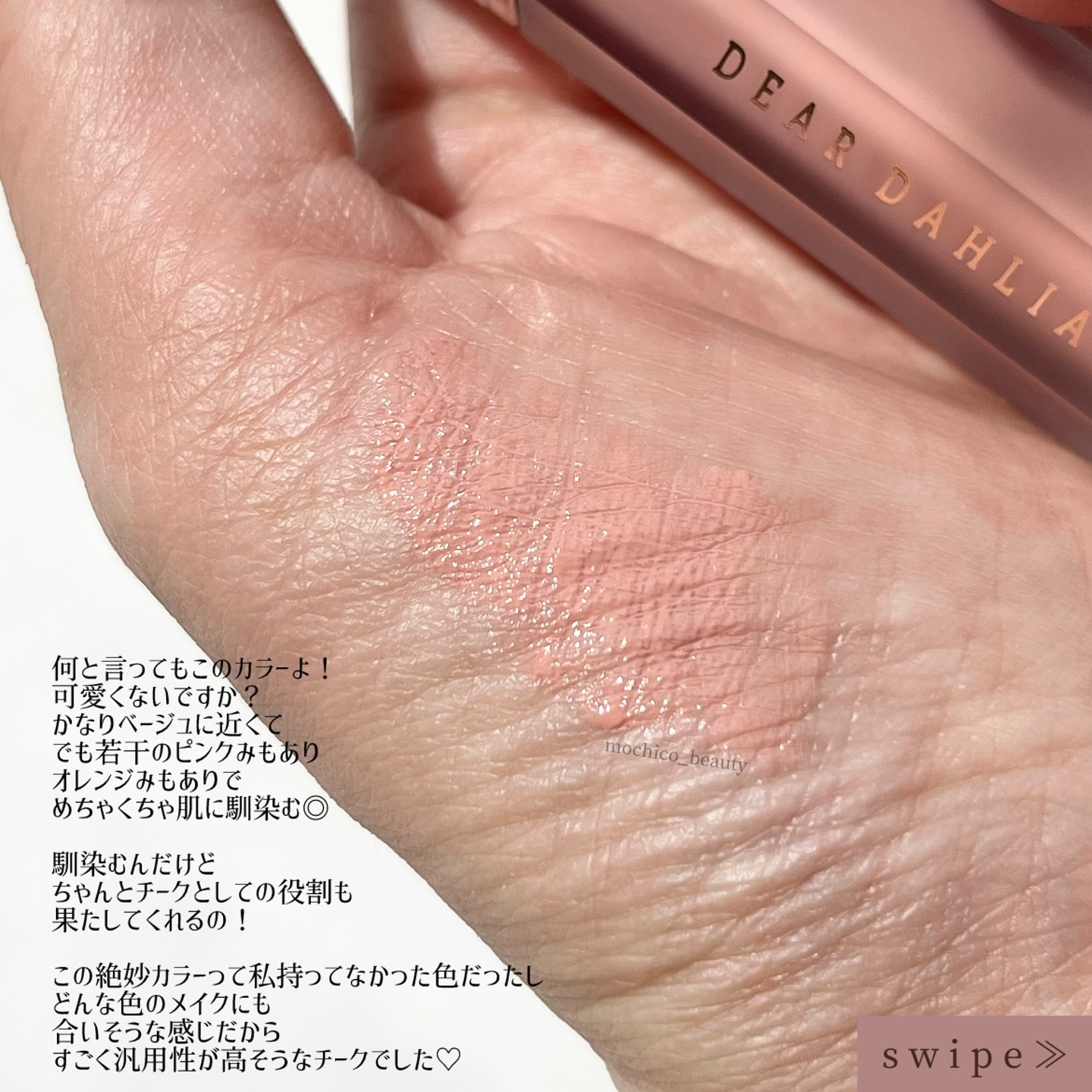 内側からジュワッと自然な血色感が出せて頬をポッとできちゃうよ◎ ほわっほわな仕上がりが可愛いの。 みずみずしいテクスチャーでベタつきはなく広げるとピタッと密着してツヤも出せる♪ スキンコンディショニング効果もあってお肌への負担も少なくメイクアップできるのも嬉しいポイント♪