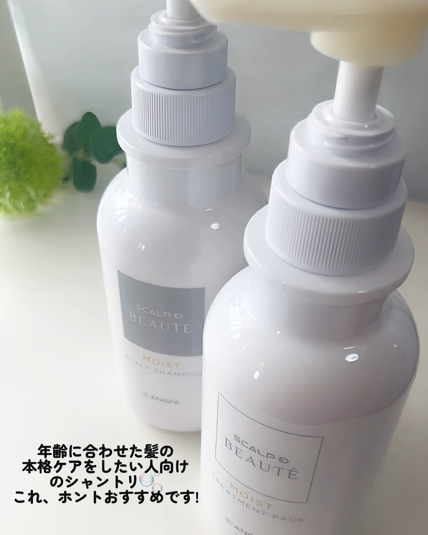 大人の女性には大人の女性ならではの悩みが詰まってる✍︎︎︎ 特にボリューム不足のぺたんこ髪と、パサついた髪の毛は老けて見える要因のひとつ。 スカルプD ボーテは、ただ髪の毛の自然なボリューム感アップを目的とした商品設計じゃなくて、頭皮から健やかになることで髪の毛のぺたんこ悩みにもアプローチしてくれるアイテム♡⃛ 薬用スカルプシャンプーは扱いやすいとろみ具合。 薬用トリートメントパックはヘアパックしやすく、ヘアマスクにも近いテクスチャーかも。