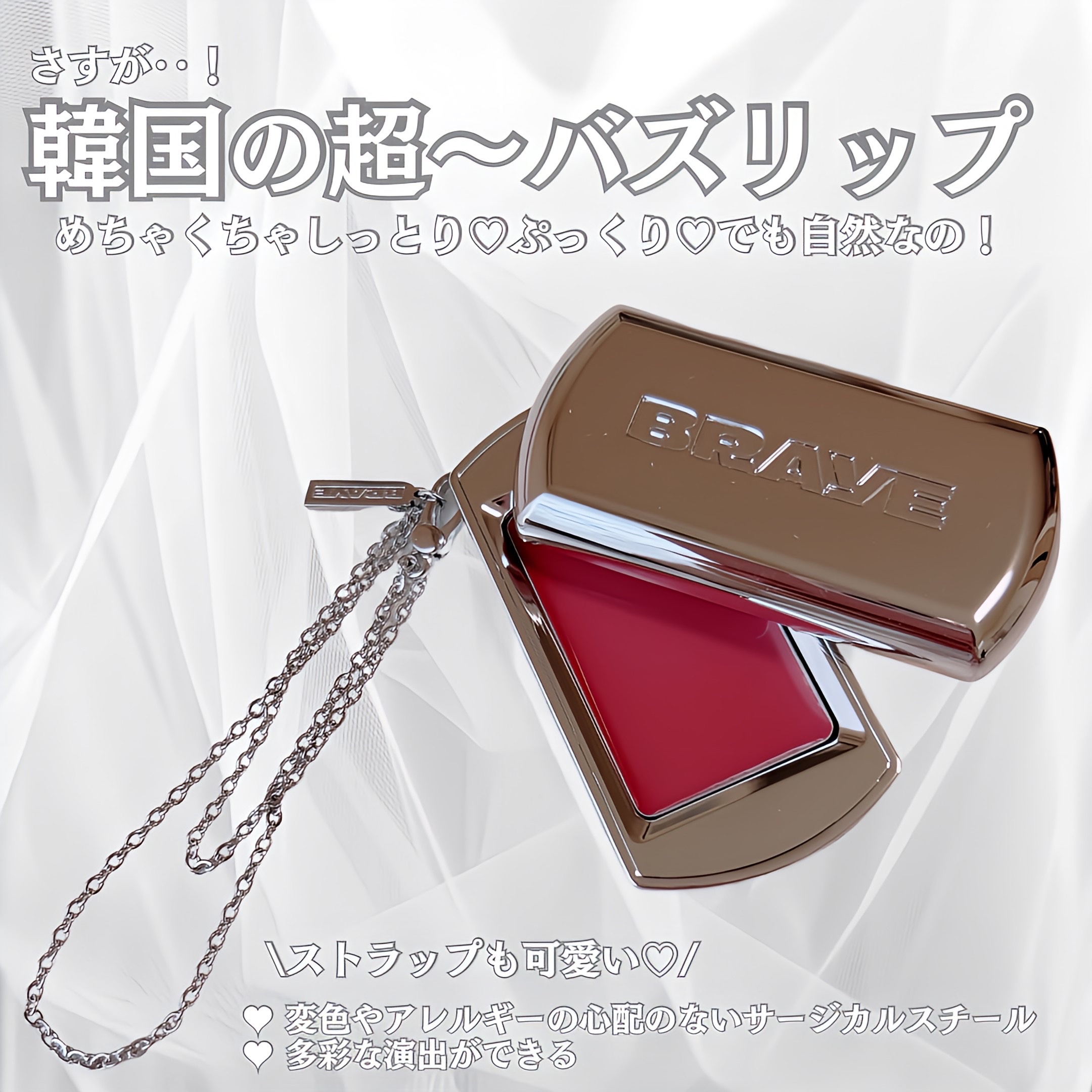 - スライディング容器に入れたBRAYEだけの感性を込めたリップ&チーク。 全10色展開。リンゴ種子オイルが含有されており、リップコンディショニングケアまで。 スッと体温に溶けるバームタイプで高発色で密着力の高いテクスチャー。 専用のストラップとブラシで自分なりの個性あふれる「ユニークなカスタムコスメ」としても、ファッションアイテムとしても大活躍できます。