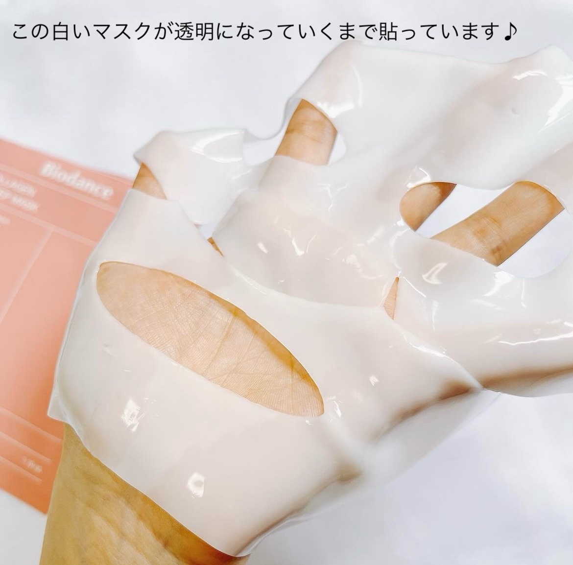 オリヤンで1位を獲得したこともある バイオダンスのコラーゲンマスクパック🫧 これ1枚で保湿・毛穴・ハリケアが出来る.ᐟ.ᐟ 白いぷるぷるのハイドロゲルマスクが時間が経つと美容液が肌に吸収されることによって透明に変化するのが特徴.ᐟ.ᐟ 上下で分かれてるからフェイスラインに沿って貼りやすく剥がれにくいのが◎
