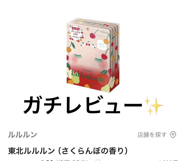 ルルルン【東北限定】さくらんぼの香り¥1,600(税込)東北地方のお土産ショップで購入できます!私は青森と仙台で発見しました〜✨✼••┈┈••✼••┈┈••✼••┈┈••✼••┈┈••✼◆良かったところルルルンなので、安定に[ 肌馴染みが良い...
