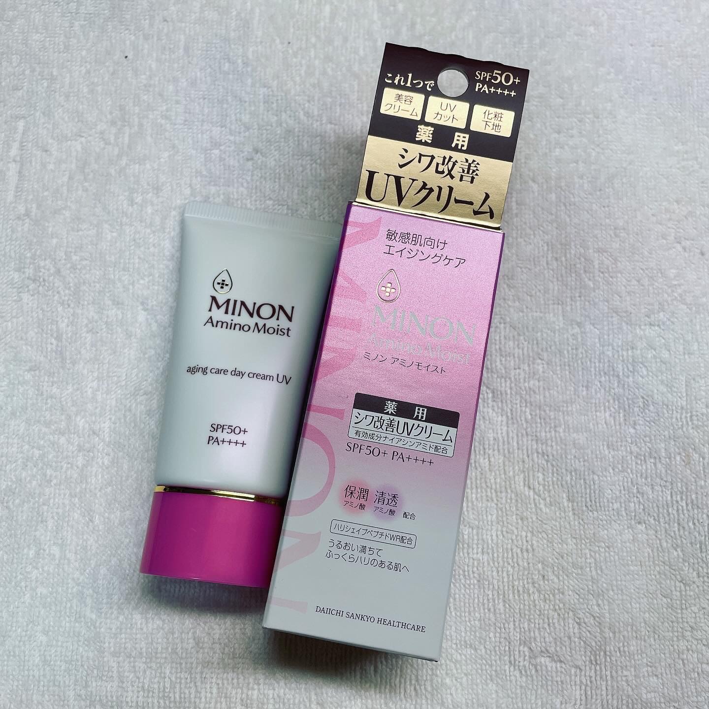 シワ改善UVクリーム🌞なんて心地よい響き♬シワ改善〜♬ ♪ ♬紫外線をカットしながらシワ改善♬ミノン💞ミノンアミノモイストエイジングケアデイクリームUV敏感肌向け エイジングケア♬美容クリーム♪UVカット♬化粧下地1本で3役の優れものSPF5...