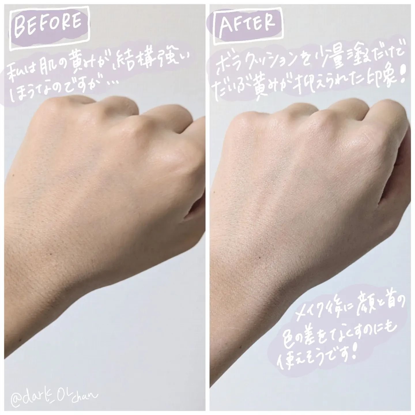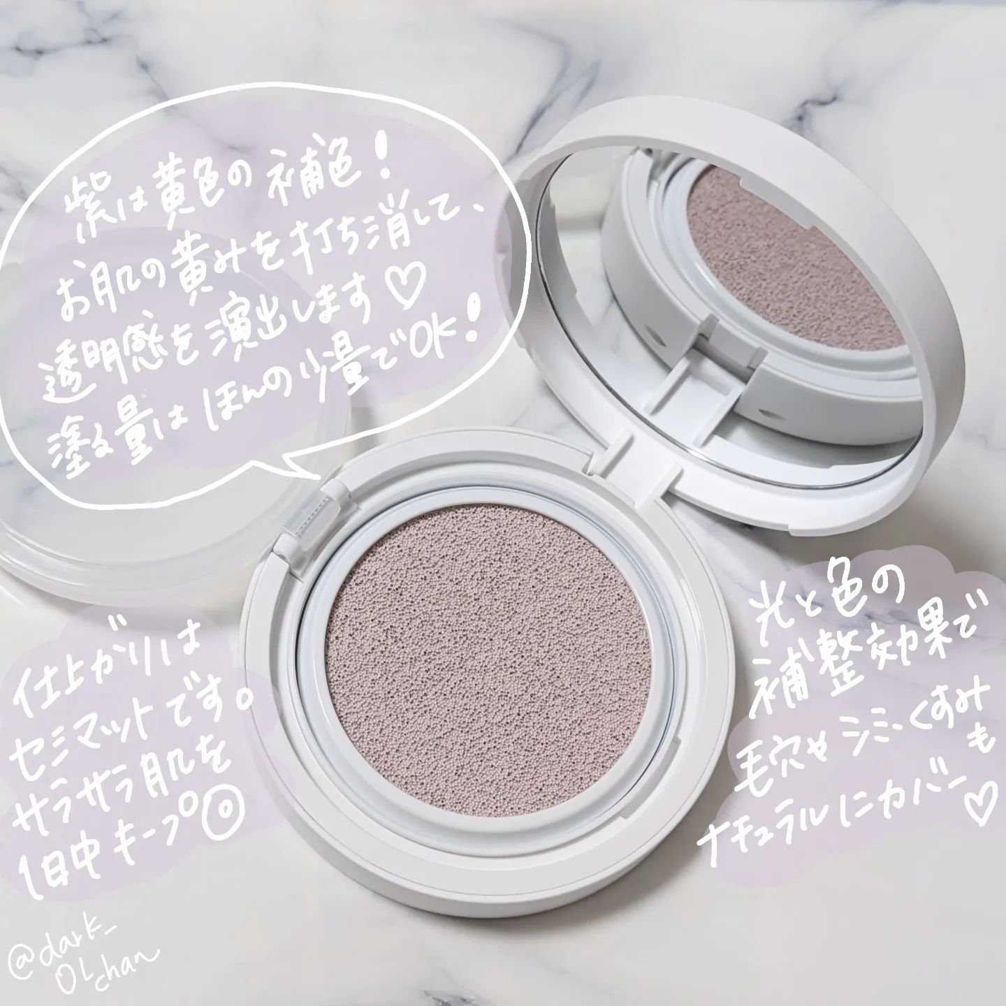 透明な紫色を肌に薄く伸ばすことで黄色いスキントーンが華やかに補完する くすみを飛ばして自然にトーンアップしつつ毛穴も綺麗にカバーしてくれます! 伸びも肌馴染みも良くて崩れにくくなるので、化粧下地として使ってます!