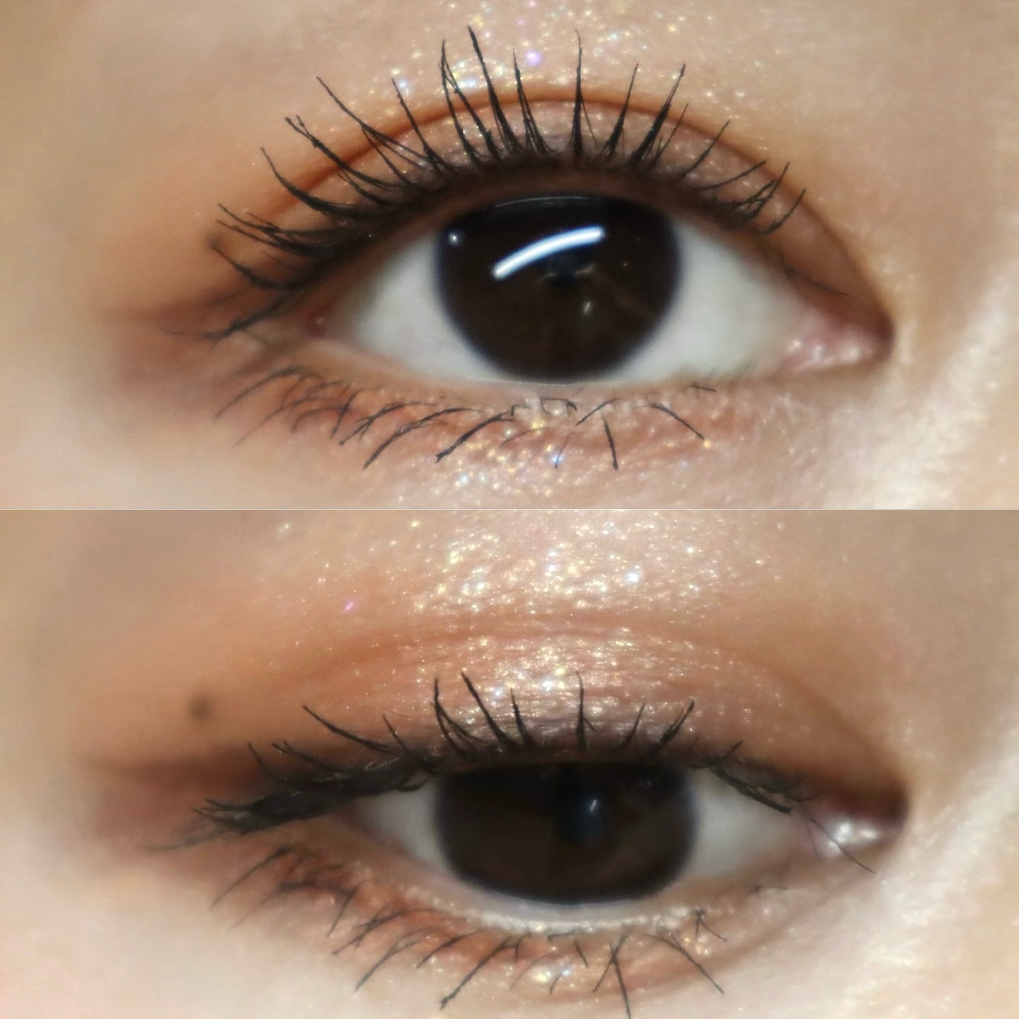 高輝度偏光パールと大粒グリッターを贅沢に配合したアイシャドウはきらめきがすごい…!さっと塗るだけで濡れたようなツヤ感✨ 角度によってパールの輝きがまた変わるから見てるだけでも幸せ…🥰 しっとりとした粉質で密着力も高くこれは人気が出る予感😉💕
