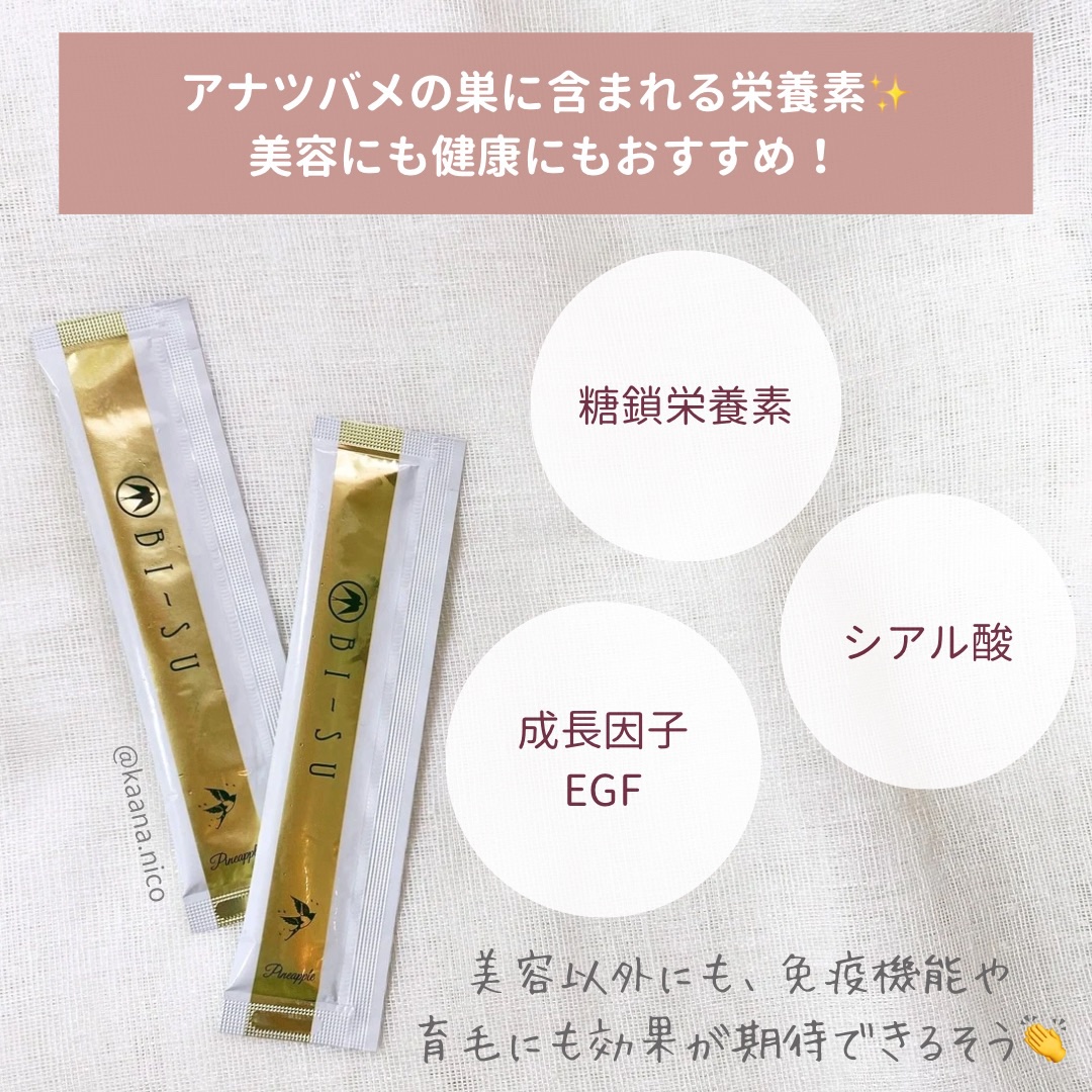 毎日の美容習慣にBI-SUエキスゼリースティック🍍希少な天然アナツバメの巣を独自の方法でエキス化。シアル酸やビタミンC、コラーゲンなどを組み合わせ、日々の美容ケアに取り入れやすいスティックゼリーです。パインアップル味のほどよい甘みと酸味で、す...