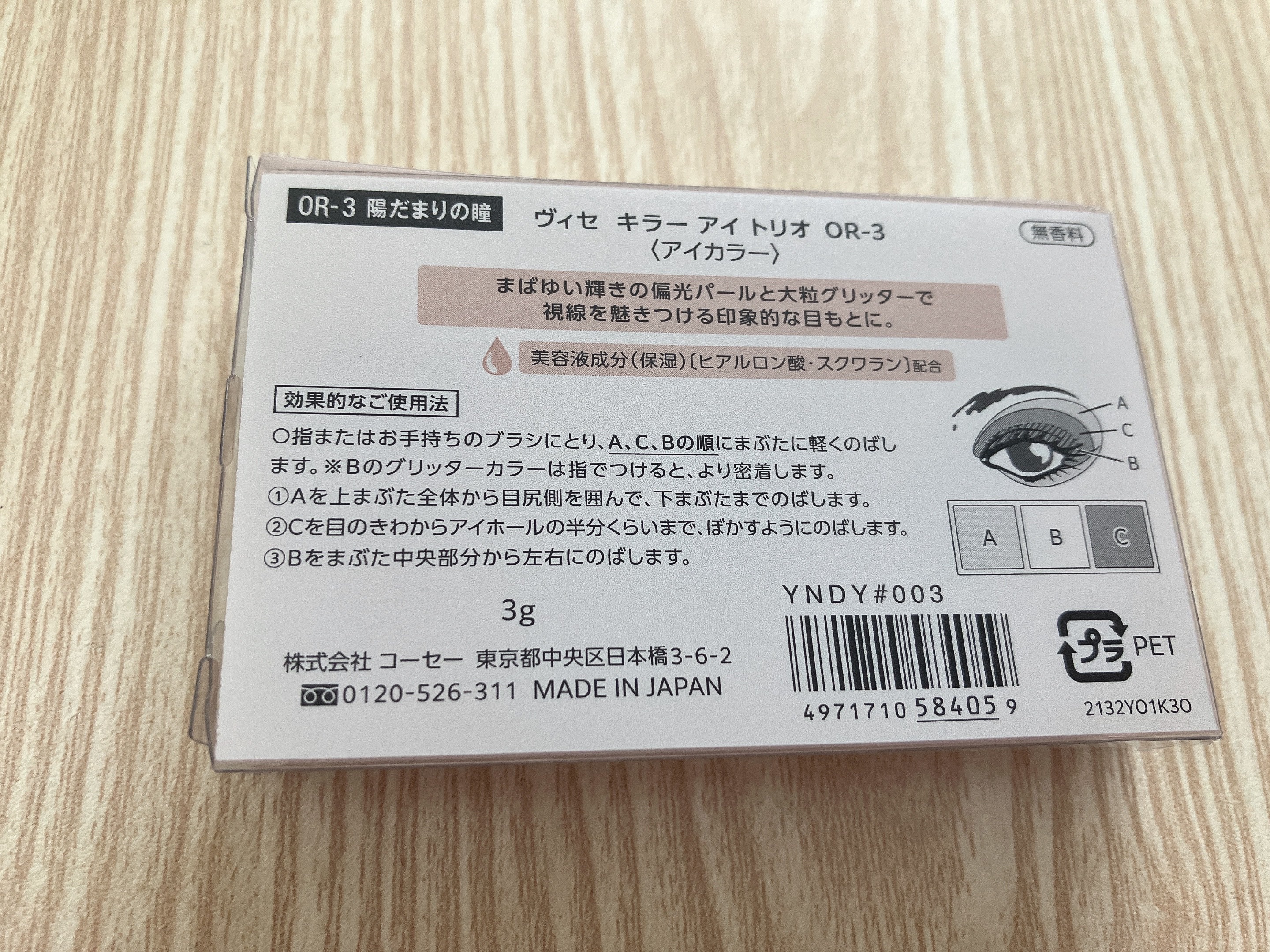 - 角度によって色が変わる高輝度偏光パールを多量配合。動くたび輝きが変化する高密着な3色入りセットアイカラー。 ● 高輝度偏光パールと大粒グリッターを贅沢に配合した、3 色セットのアイカラーです。 まぶたにしっとりとけこむようにフィットして、大粒パールやグリッターも高密着。 大胆に輝き、色気を放つ目もとがつづきます。 ● 見る角度や光の当たり具合により色味が変化する高輝度偏光パール(カラーチェンジグリッター)とクリアで高輝度な大粒グリッターを組み合わせて配合。 まばたきや動きにより色と輝きが変化する、魅力的な目もとを演出します。 ● 化粧もちを高めるフィットオイル成分配合。まぶたにピタッと密着し、パール落ちを防止。 高い透明感とツヤ感も付与し、美しい仕上がりが持続します。 ● カラーによって異なるベースを採用。 [ハイライトカラー(A)] もちっと生質感で、肌にとけこむように密着するスフレベース。 繊細なパールの輝きで、まぶたに光を取りこみ、下地効果でアイカラーの密着も高めます。 [グリッターカラー(B)] 輝きを最大限に引き出す透明性の高いベースに、高輝度偏光パールと大粒グリッターを贅沢に配合。 密着性の高いフィットオイル成分とペーストオイルをかけあわせることで、パール落ちも防止。 [アクセントカラー(C)] のび広がりのよさと高い密着性を両立して美発色を叶えたベース。 フィットオイル成分を最高量配合(パレット内比)し、粉体をコーティングすることで クリアで美しい発色と上質なツヤが持続します。 ● 無香料