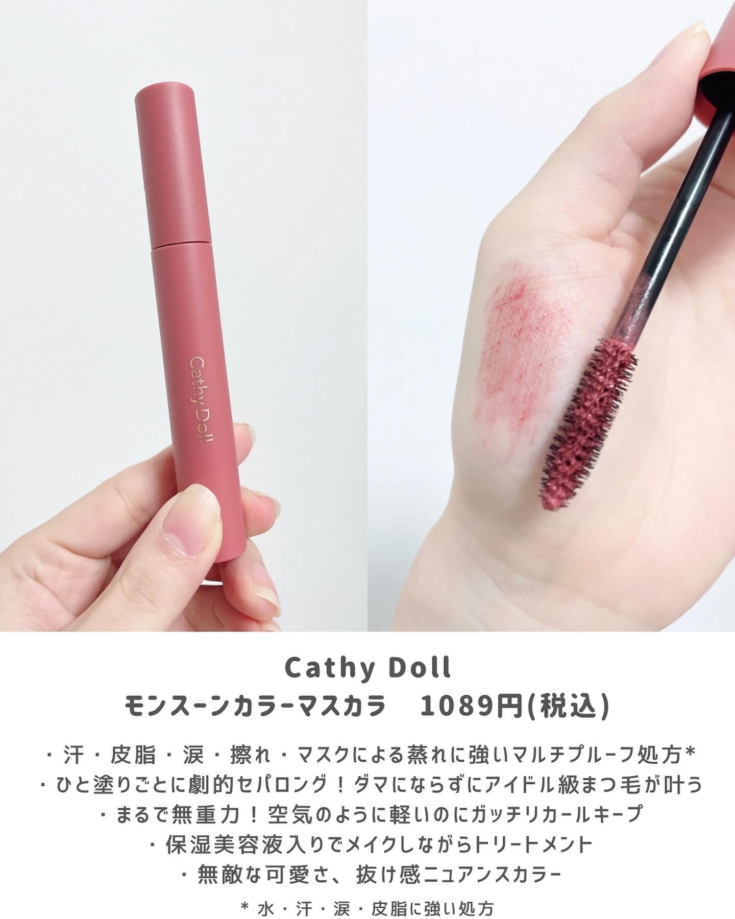 幅広い年代の方が使えるタイコスメ✨ 脂性肌の私は、高温多湿のタイで作られたコスメがまじで肌に合う👼 化粧水・美容液・ジェルクリームがそれぞれパウチになってるから使いやすい🥰✨ 全体的に軽い付け心地だから、肌質問わず使いやすい印象♡ しっかり発色・まつ毛に密着するようなもったりとした液が特徴🍒 今回使用した03はピンクレッド系で雰囲気もがらっと変わるよ💡